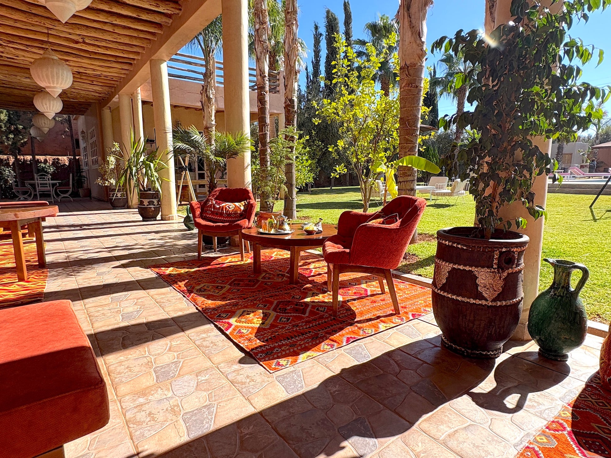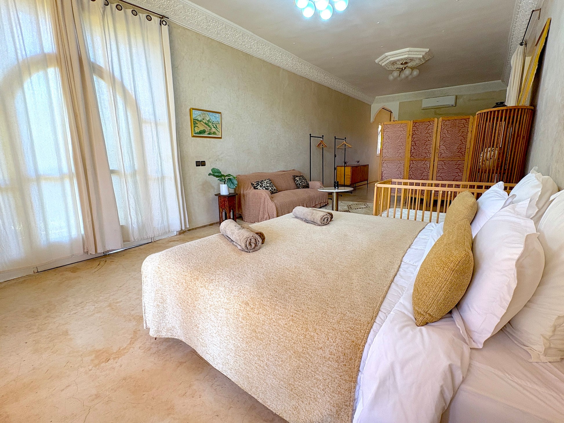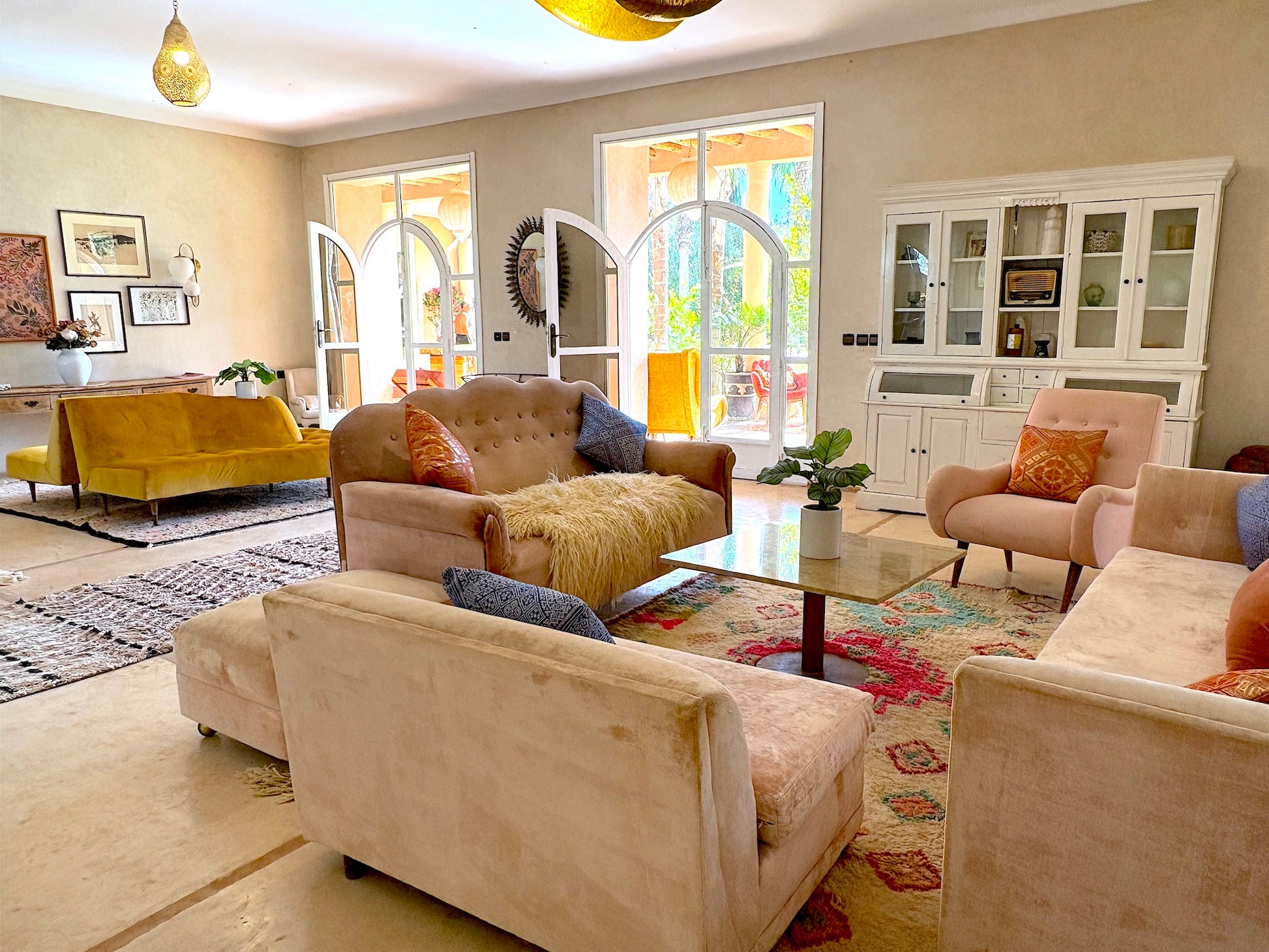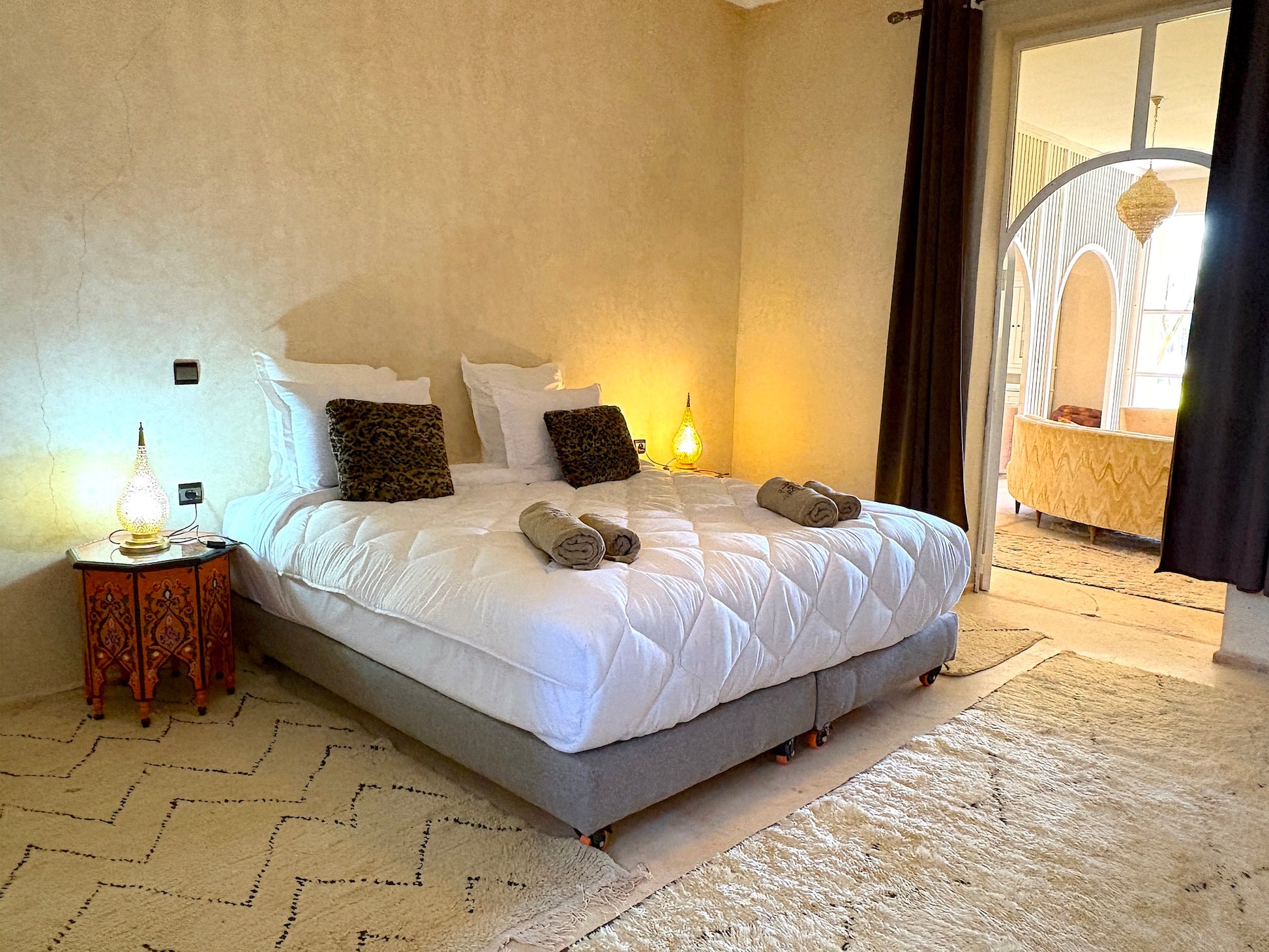 Le Palais Bohemia vous ouvre les portes d'un paradis secret à Marrakech, où le luxe oriental se mêle à un charme intemporel. Dans ce sanctuaire magique, un salon spacieux et lumineux vous invite à la détente, ses 7 chambres somptueuses offrent un confort royal. Pouvant accueillir jusqu'à 16 personnes, laissez-vous envoûter par l’extérieur, où une élégante piscine et un coin repas ombragé promettent des moments d'exception. Offrez-vous un séjour unique, alliant raffinement et sérénité.