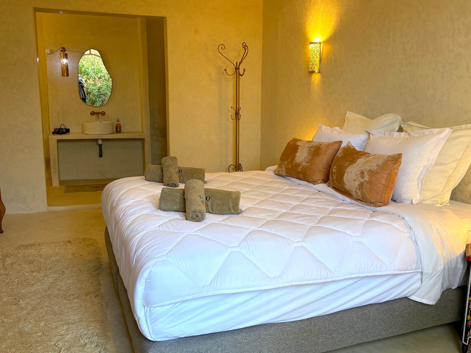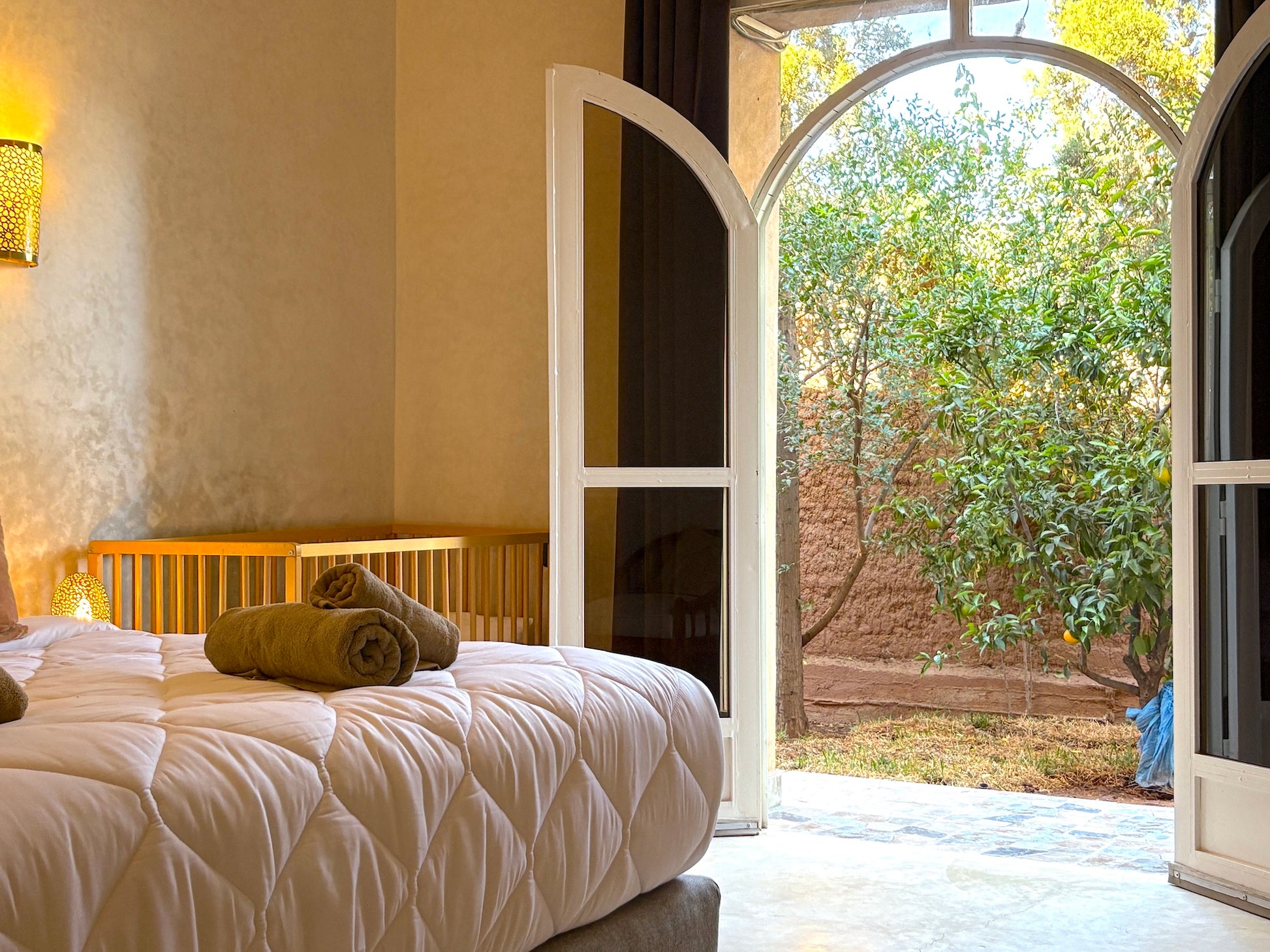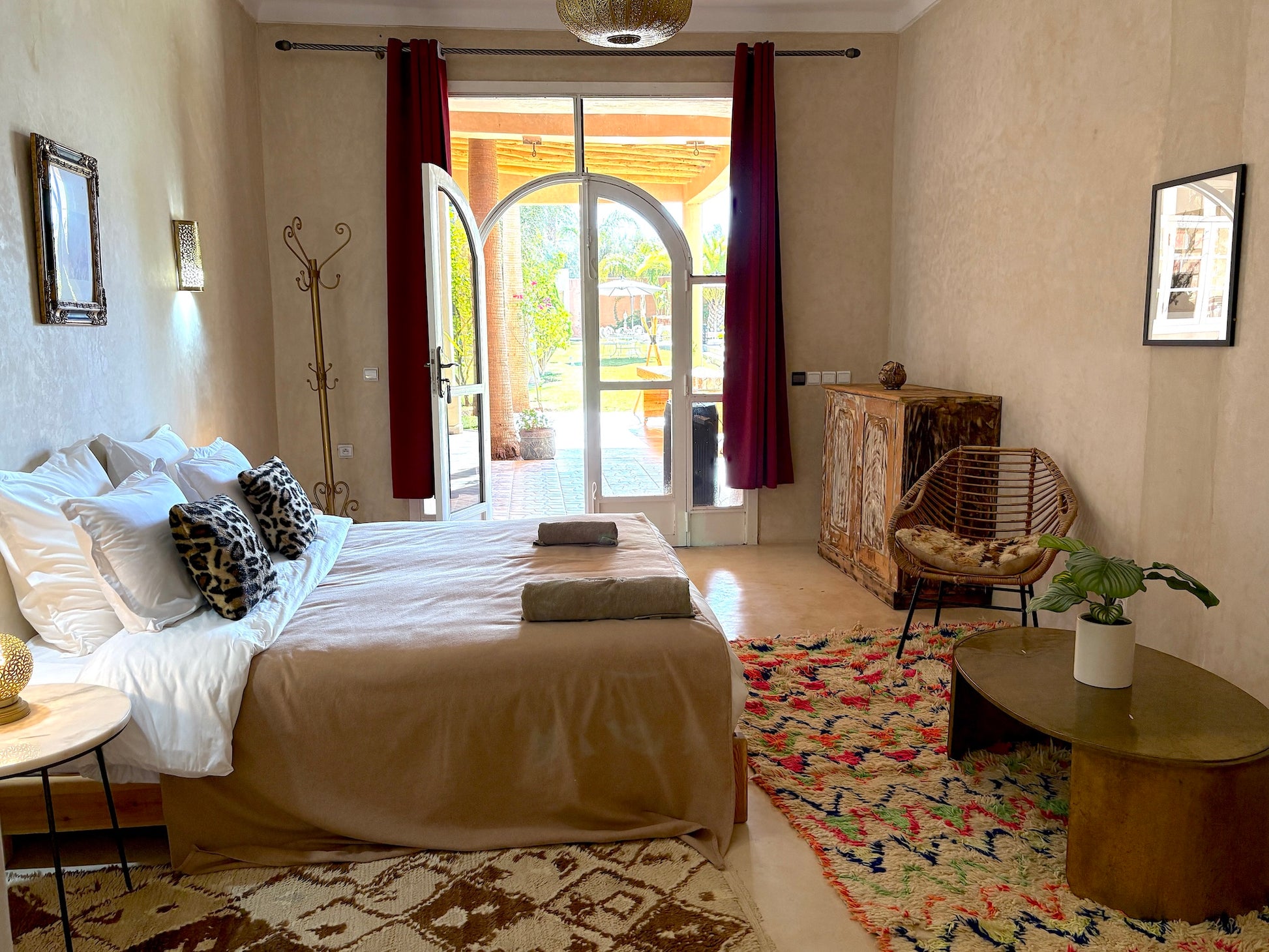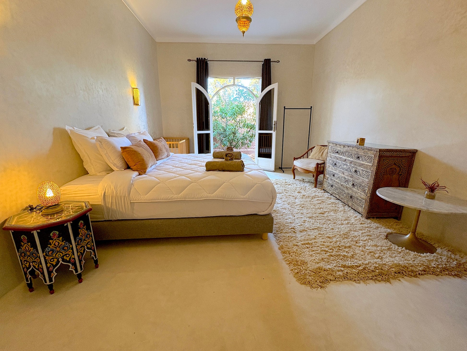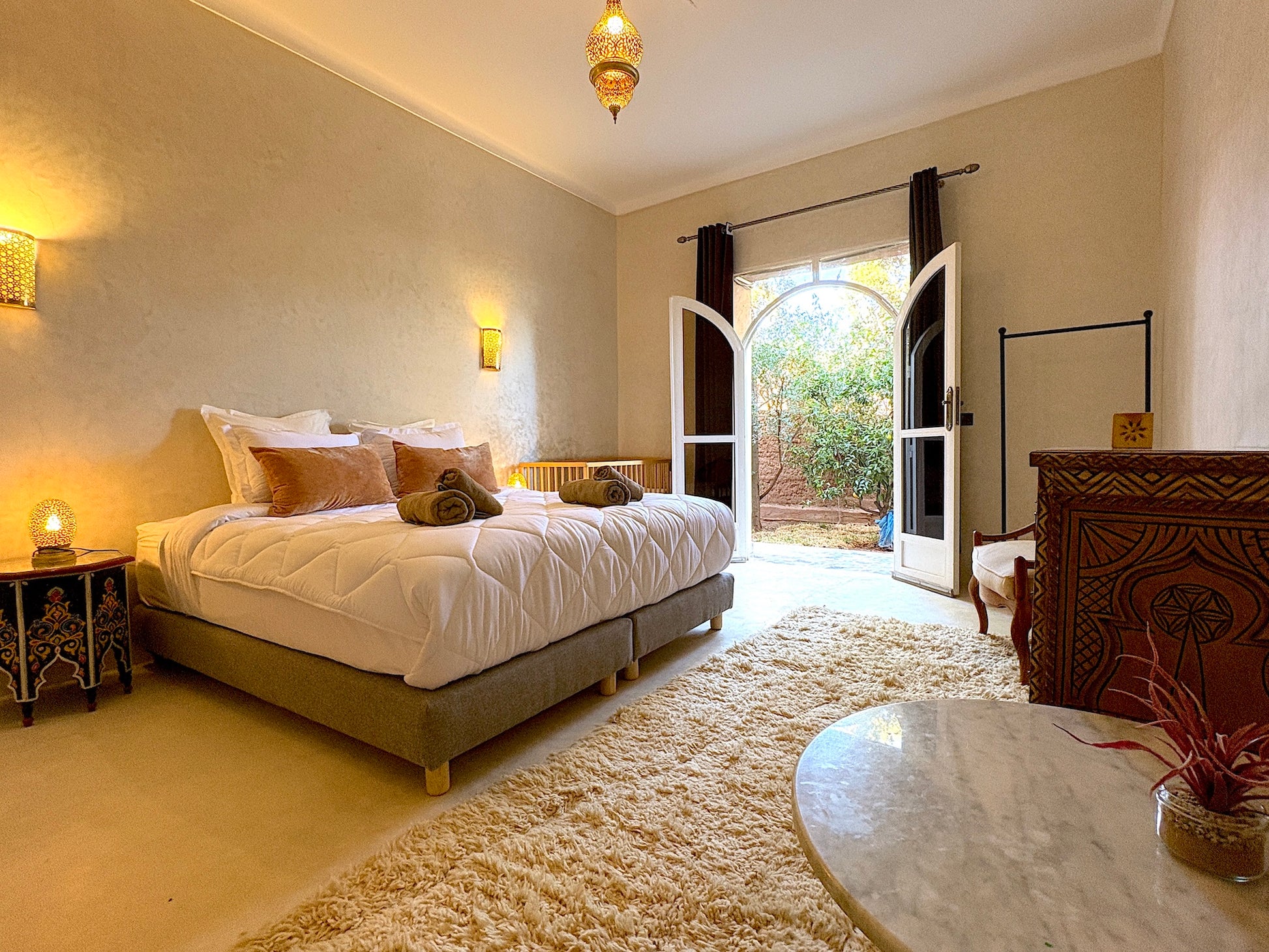 A environ 30 minutes en voiture du centre de Marrakech sur la route de Tahanaout. La proximité de Marrakech permet d'accéder facilement aux nombreuses attractions culturelles et historiques de la ville, tout en profitant du calme et de la tranquillité de la campagne environnante.