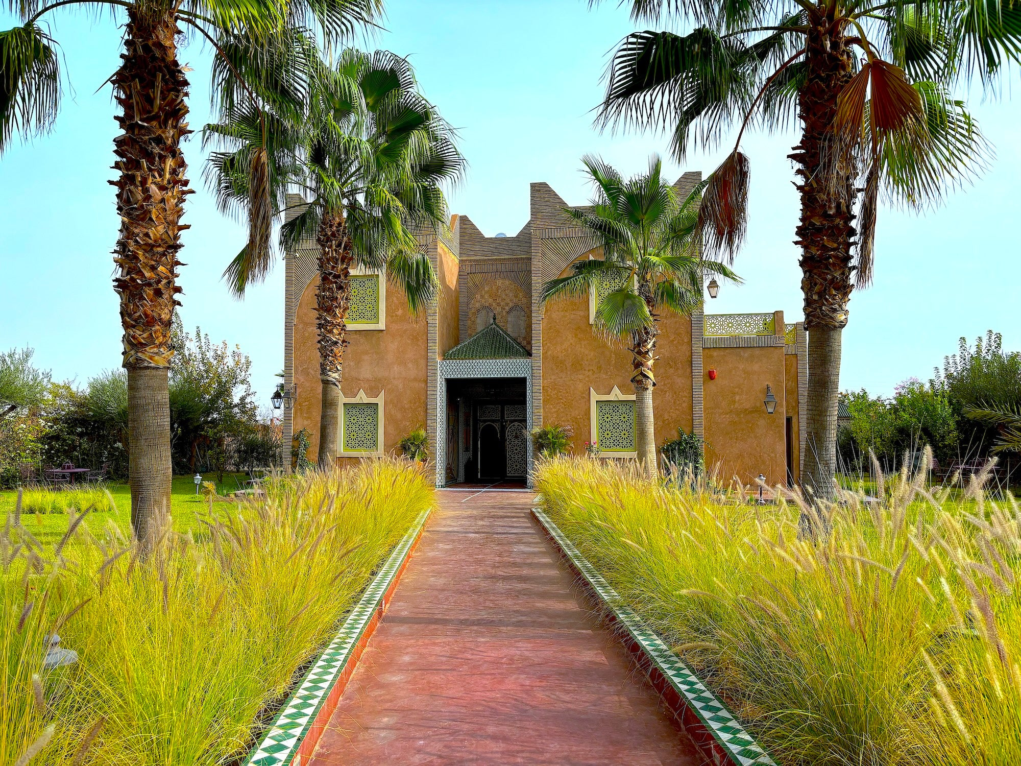 Palais Mars stands out for its unique location, secluded and enhanced by the presence of majestic palm trees, creating an atmosphere of calm and serenity. Its exclusive character is reinforced by its isolation, far from the surrounding hustle and bustle, while remaining just a few minutes from the city center of Marrakech. You will be able to enjoy the vibrant energy of the city, the colorful markets and the lively souks, while savoring the luxury and tranquility of Palais Mars. This exceptional place invites you to discover the richness of Moroccan traditions in an enchanting setting, conducive to relaxation and comfort.