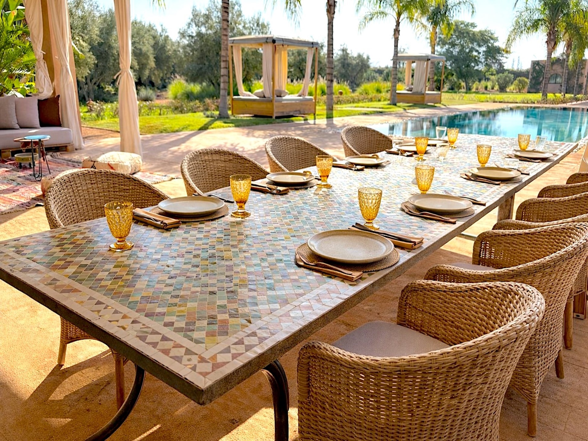 Niché dans un cadre paisible et baigné de lumière, le Palais Meryem est une retraite d’exception conçue pour accueillir jusqu’à 12 personnes. Avec ses volumes généreux, son atmosphère chaleureuse et ses espaces extérieurs parfaitement aménagés, ce palais offre une expérience marocaine raffinée, alliant confort, intimité et charme local. Entre soleil, calme et élégance, tout invite ici à vivre un séjour inoubliable, en famille ou entre amis.