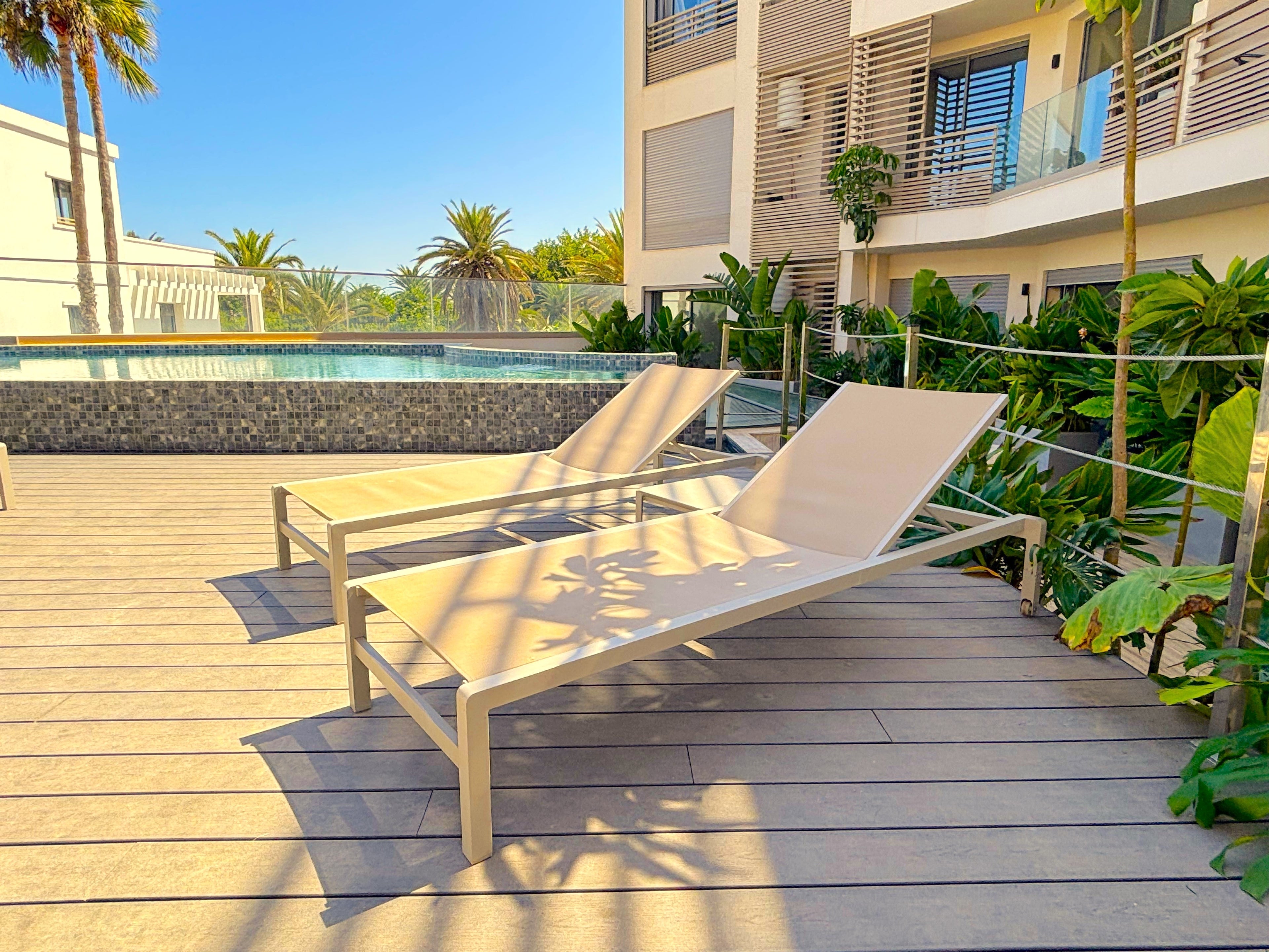 L’appartement se situe dans le quartier ultra prisé d’Aïn Diab, à Casablanca, entre palmiers, rivages dorés et adresses emblématiques. À deux pas, la corniche animée déroule ses cafés de bord de mer, ses restaurants gastronomiques, ses clubs élégants et ses plages privées.