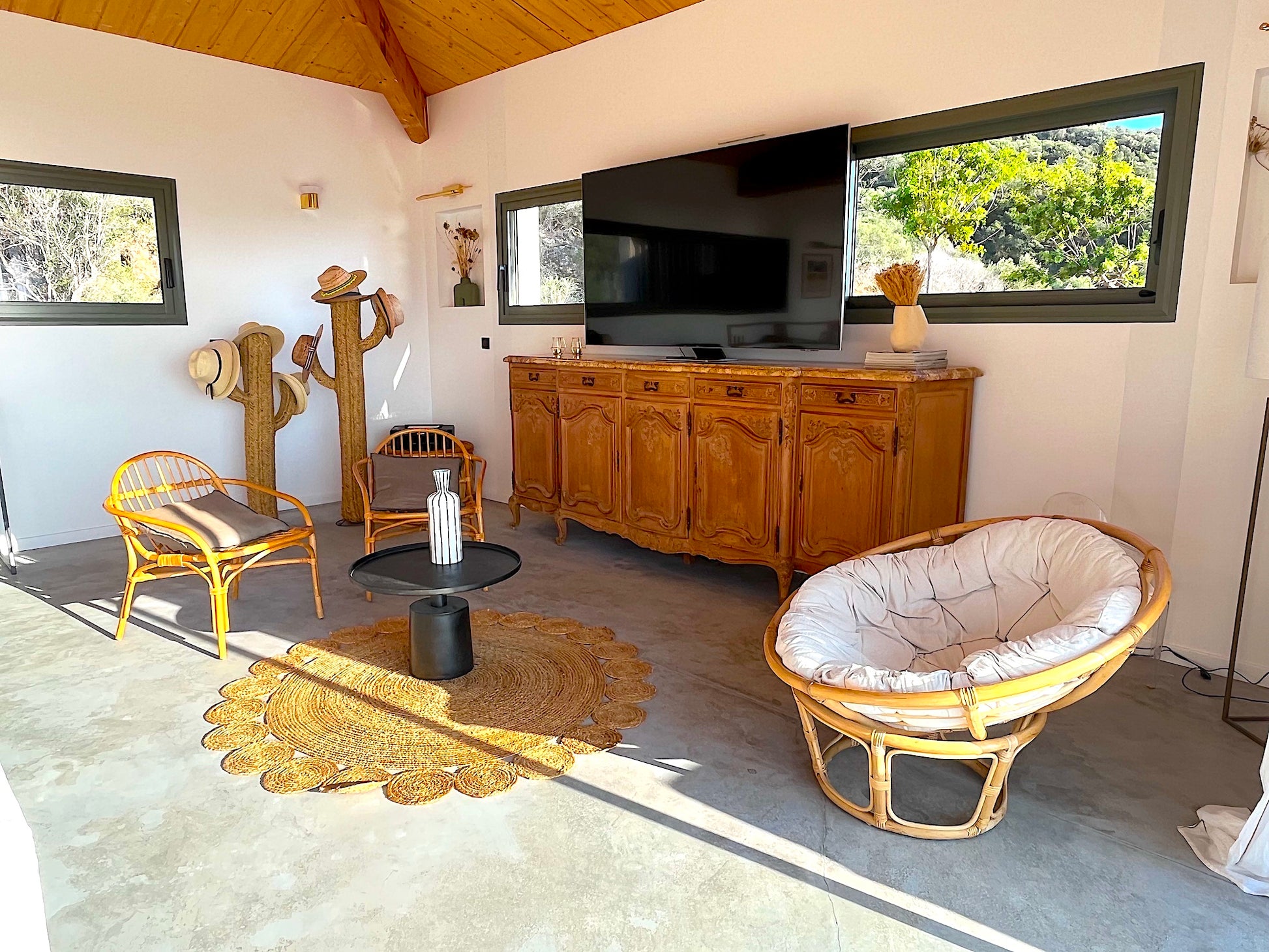 À la tombée de la nuit, vous pourrez vous détendre dans le confortable salon d'extérieur. Située à seulement 10 minutes en voiture des plages de sable doré, cette villa est le cadre parfait pour des vacances de rêve en Méditerranée.