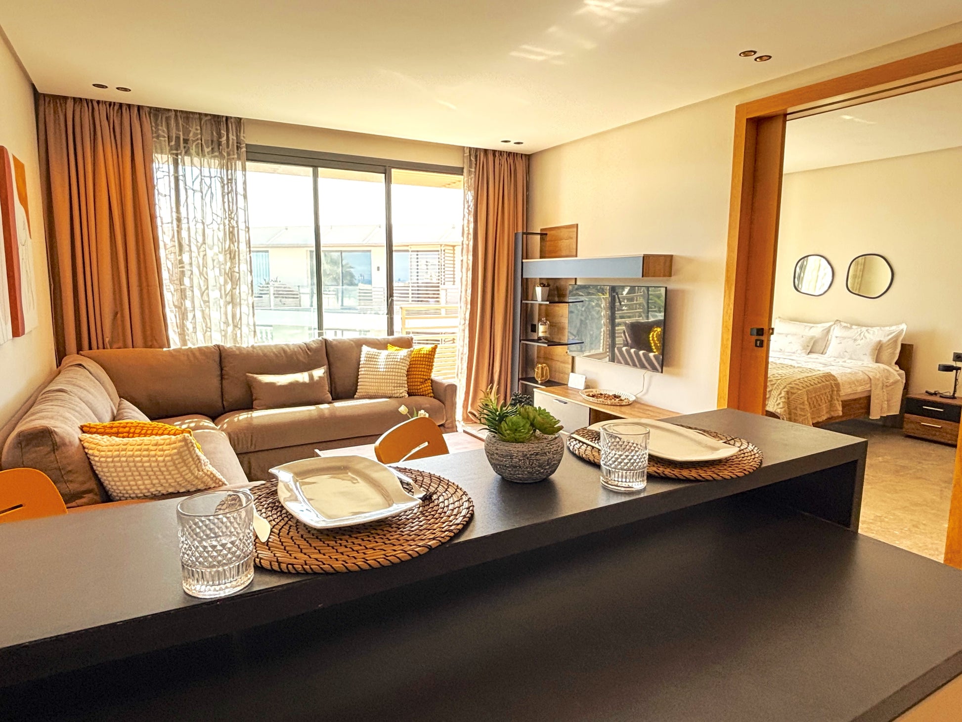 L’appartement se situe dans le quartier ultra prisé d’Aïn Diab, à Casablanca, entre palmiers, rivages dorés et adresses emblématiques. À deux pas, la corniche animée déroule ses cafés de bord de mer, ses restaurants gastronomiques, ses clubs élégants et ses plages privées.
