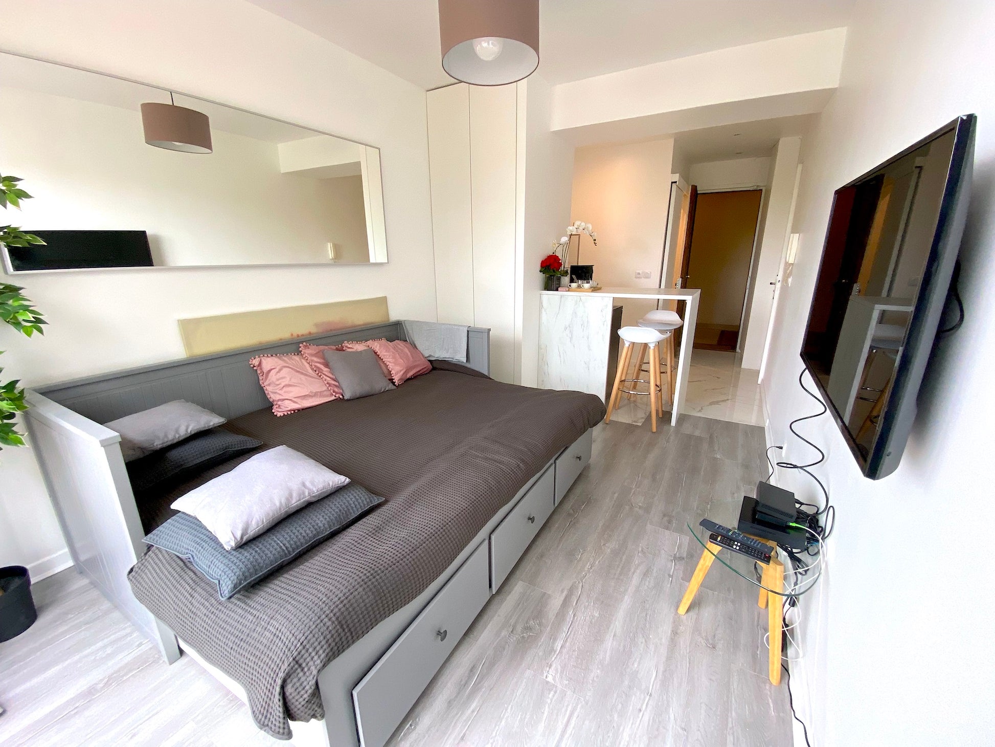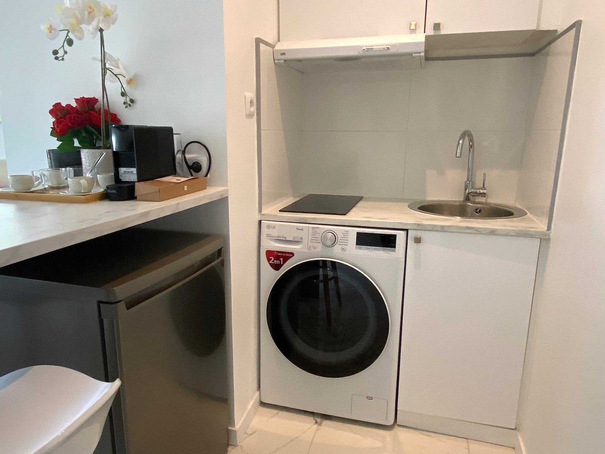 En una hermosa residencia segura, ubicada detrás del hotel Molitor y del estadio Jean Bouin, el estudio le ofrece todas las comodidades para que su estadía sea lo más perfecta posible. Un gran salón luminoso con un sofá cama con colchón de verdad. Internet Wifi y televisión por cable. Hermosa terraza soleada con vista despejada a la Torre Eiffel. El apartamento tiene aire acondicionado. La cocina está totalmente equipada con lavadora, frigorífico, microondas, cafetera Nespresso. El baño tiene una ducha italiana toda de mármol y los sanitarios están separados.