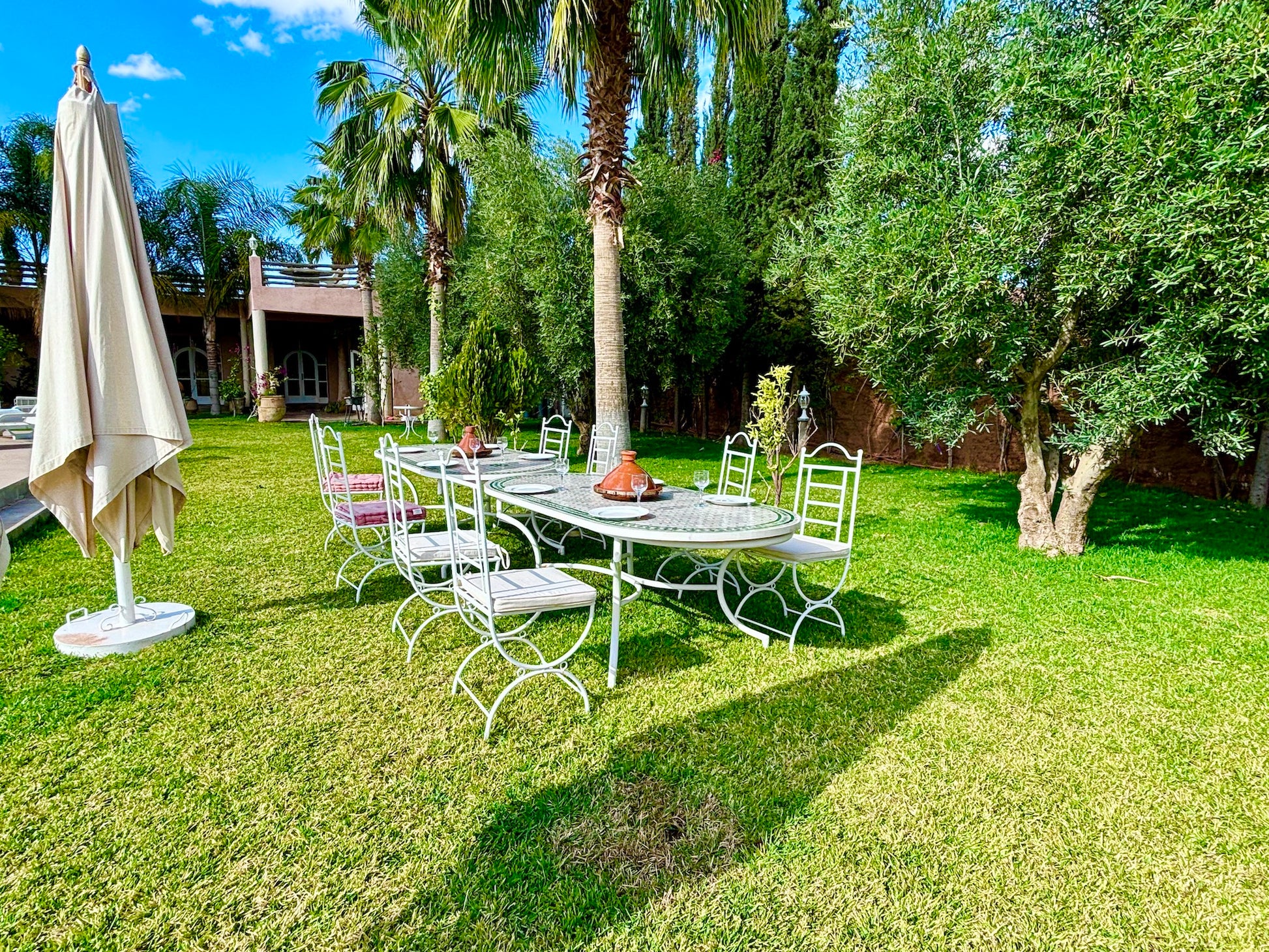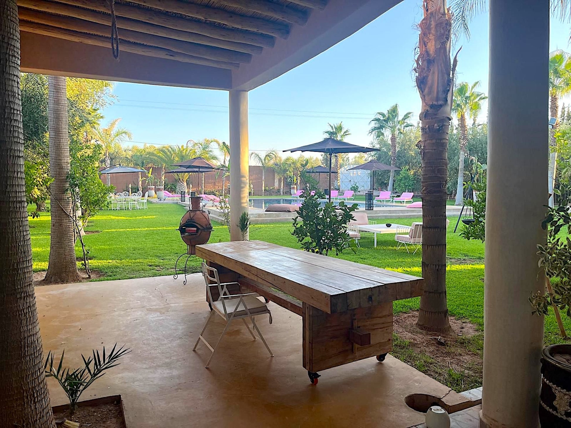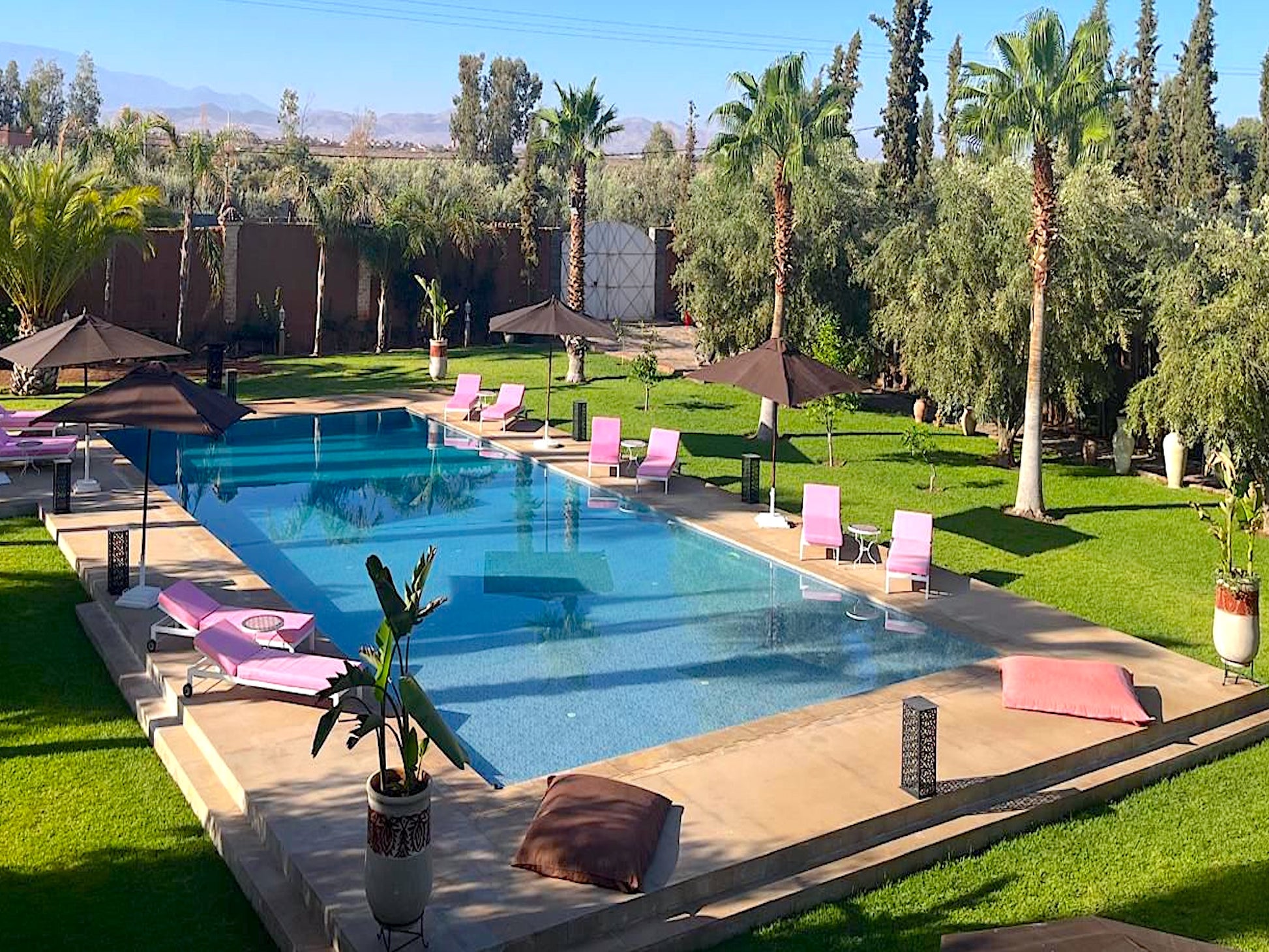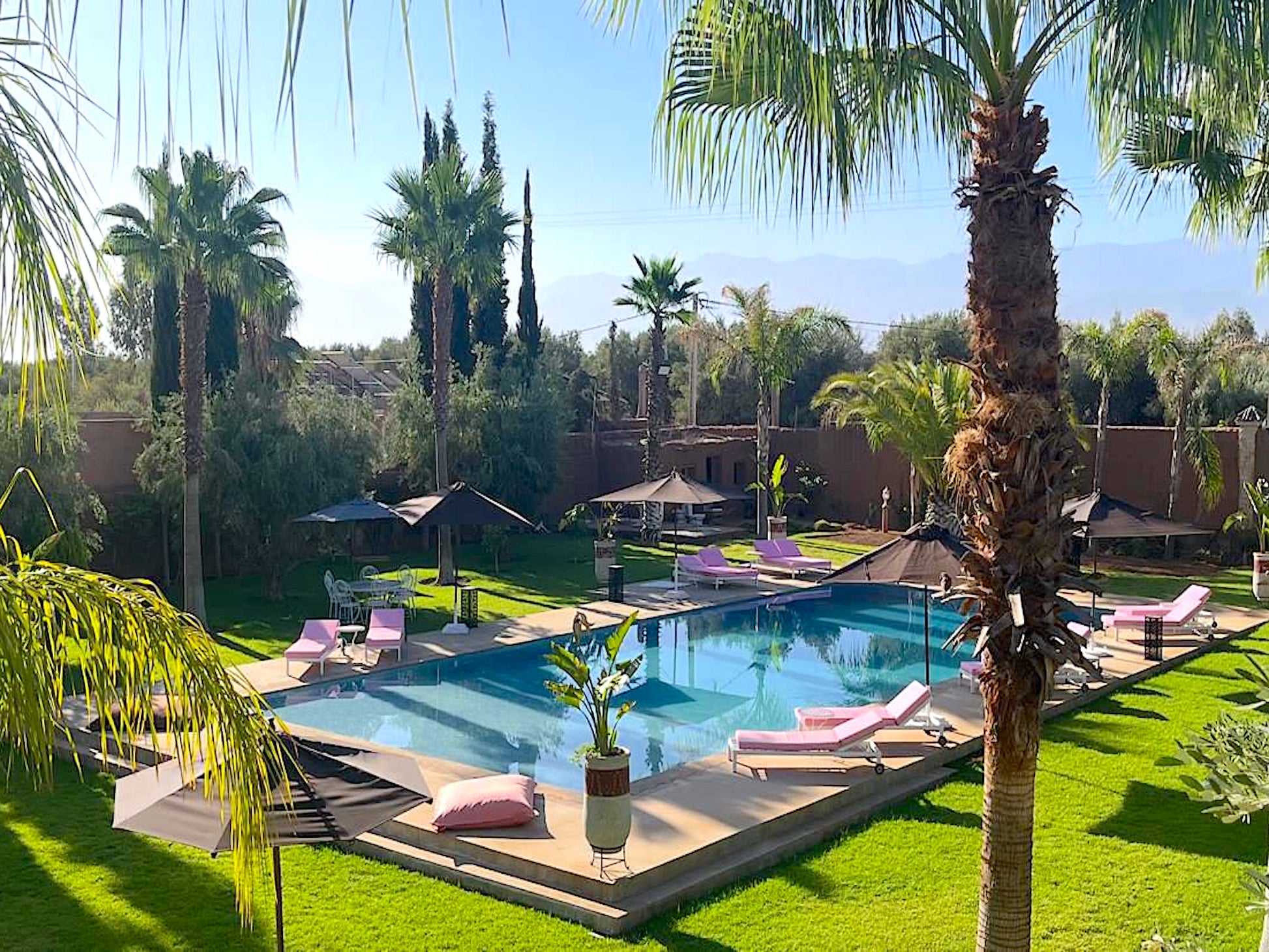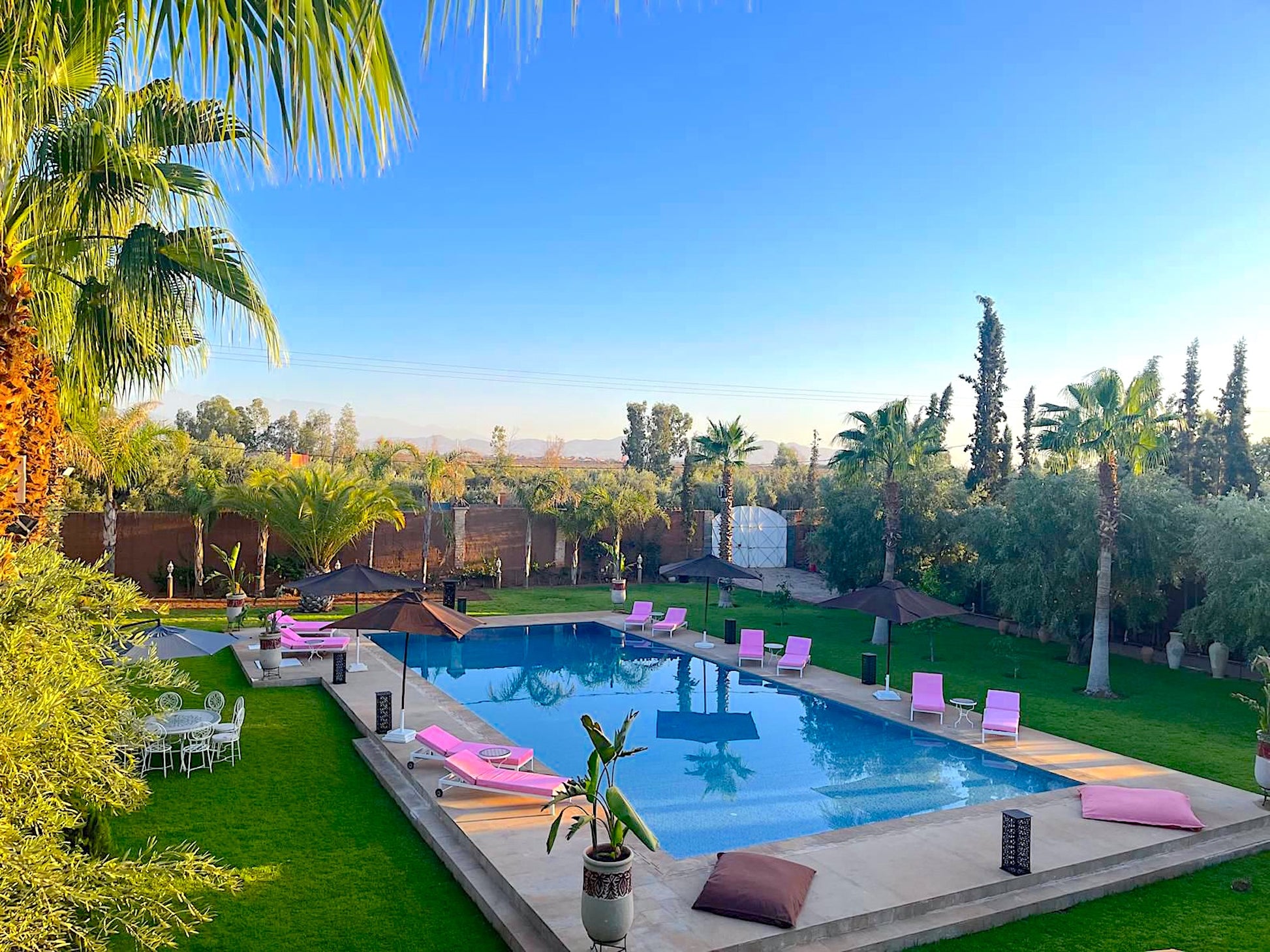 A environ 30 minutes en voiture du centre de Marrakech sur la route de Tahanaout. La proximité de Marrakech permet d'accéder facilement aux nombreuses attractions culturelles et historiques de la ville, tout en profitant du calme et de la tranquillité de la campagne environnante.