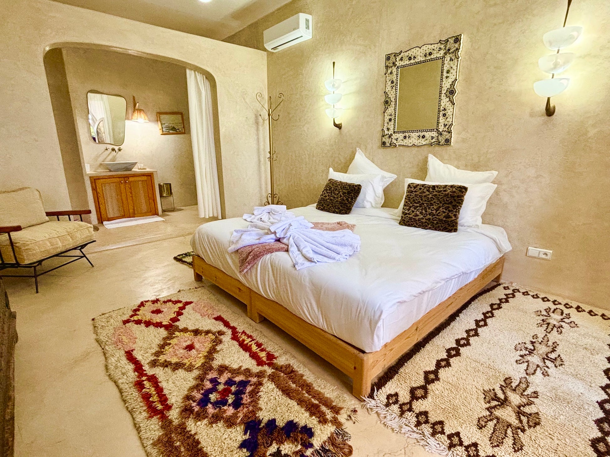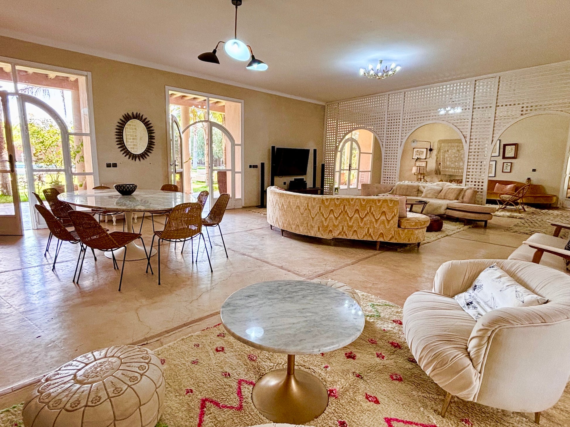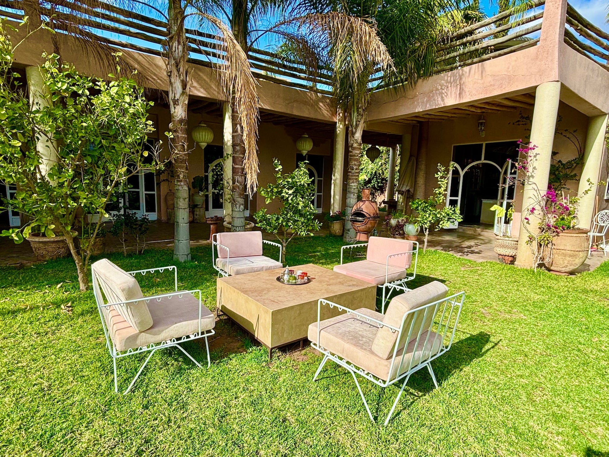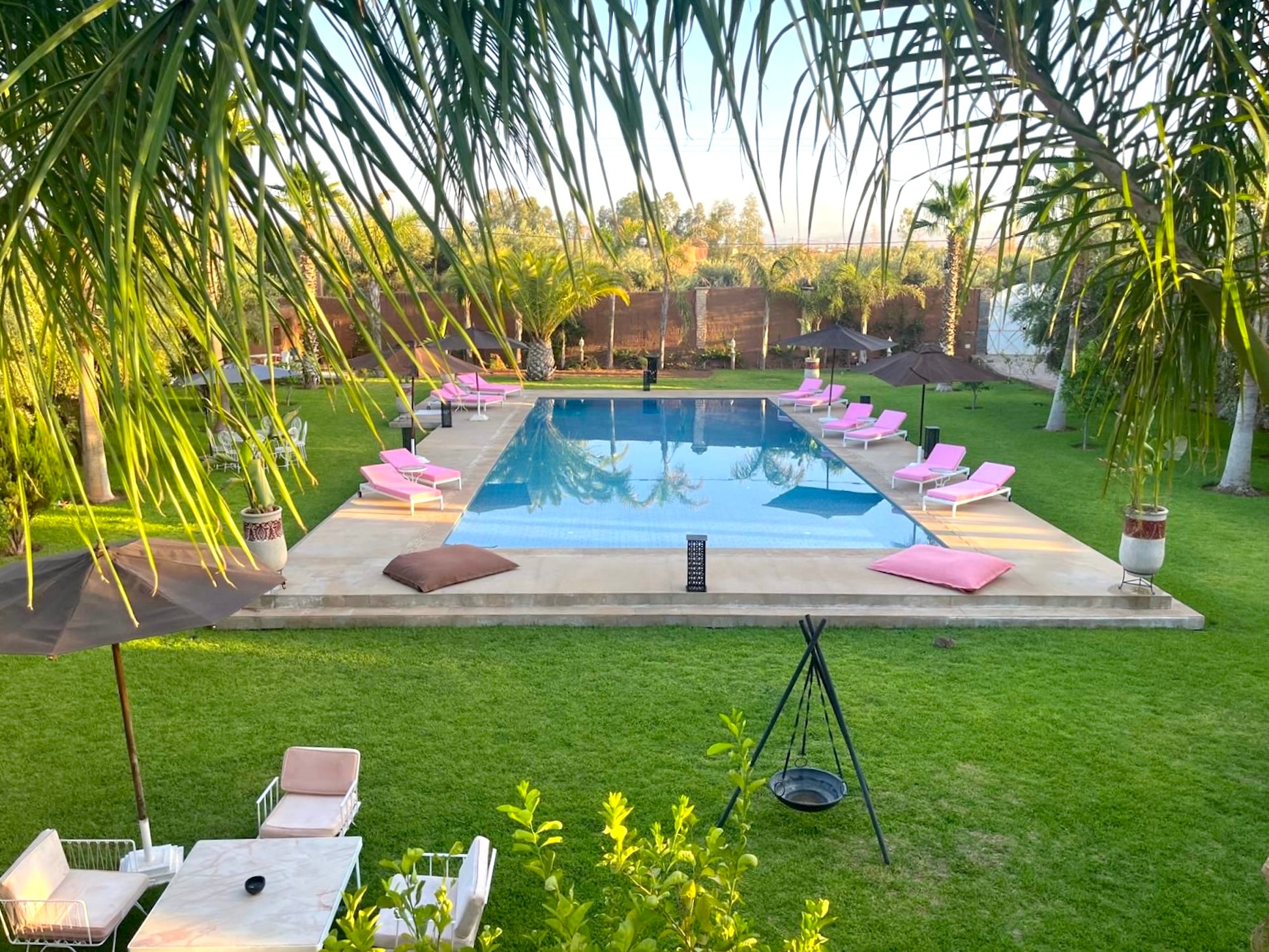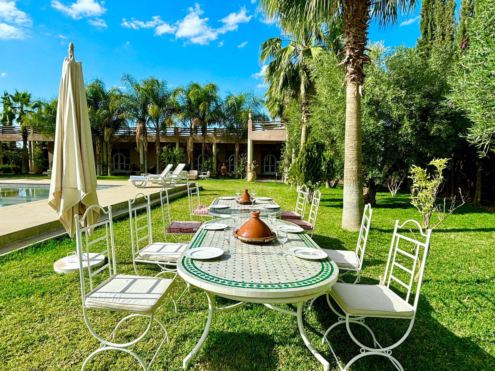 A environ 30 minutes en voiture du centre de Marrakech sur la route de Tahanaout. La proximité de Marrakech permet d'accéder facilement aux nombreuses attractions culturelles et historiques de la ville, tout en profitant du calme et de la tranquillité de la campagne environnante.