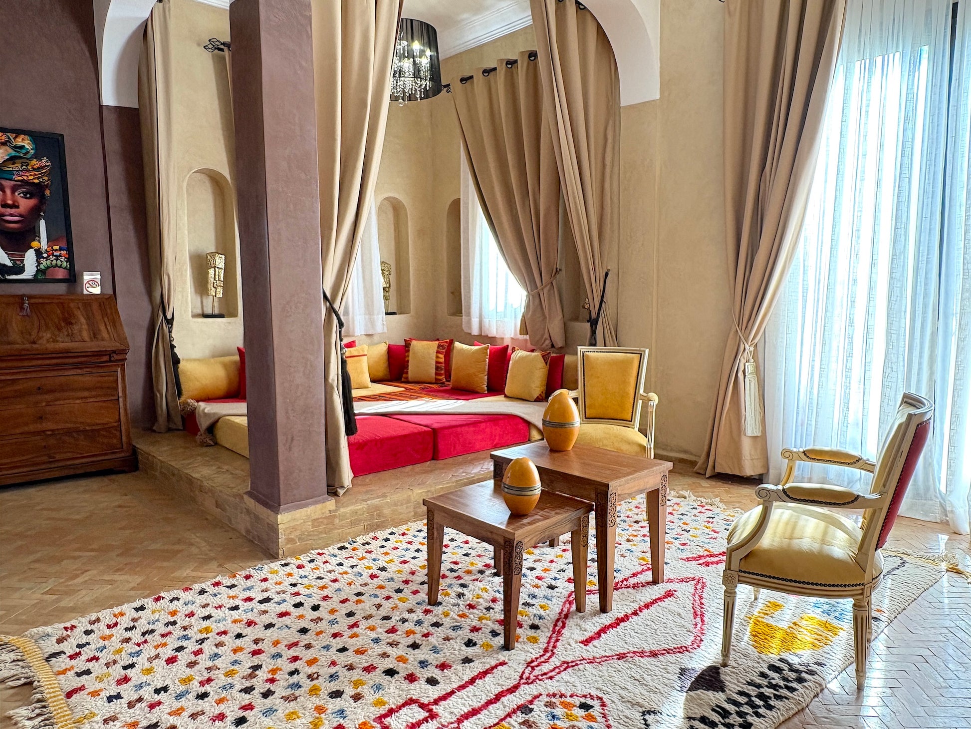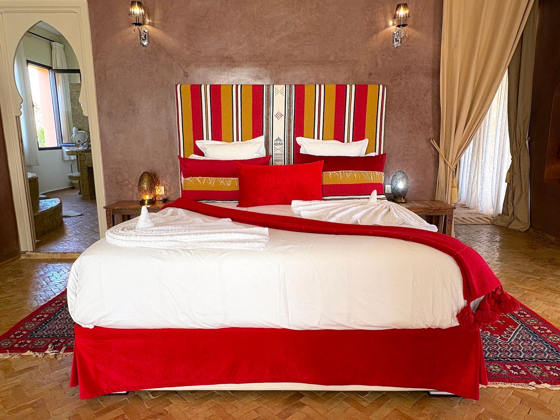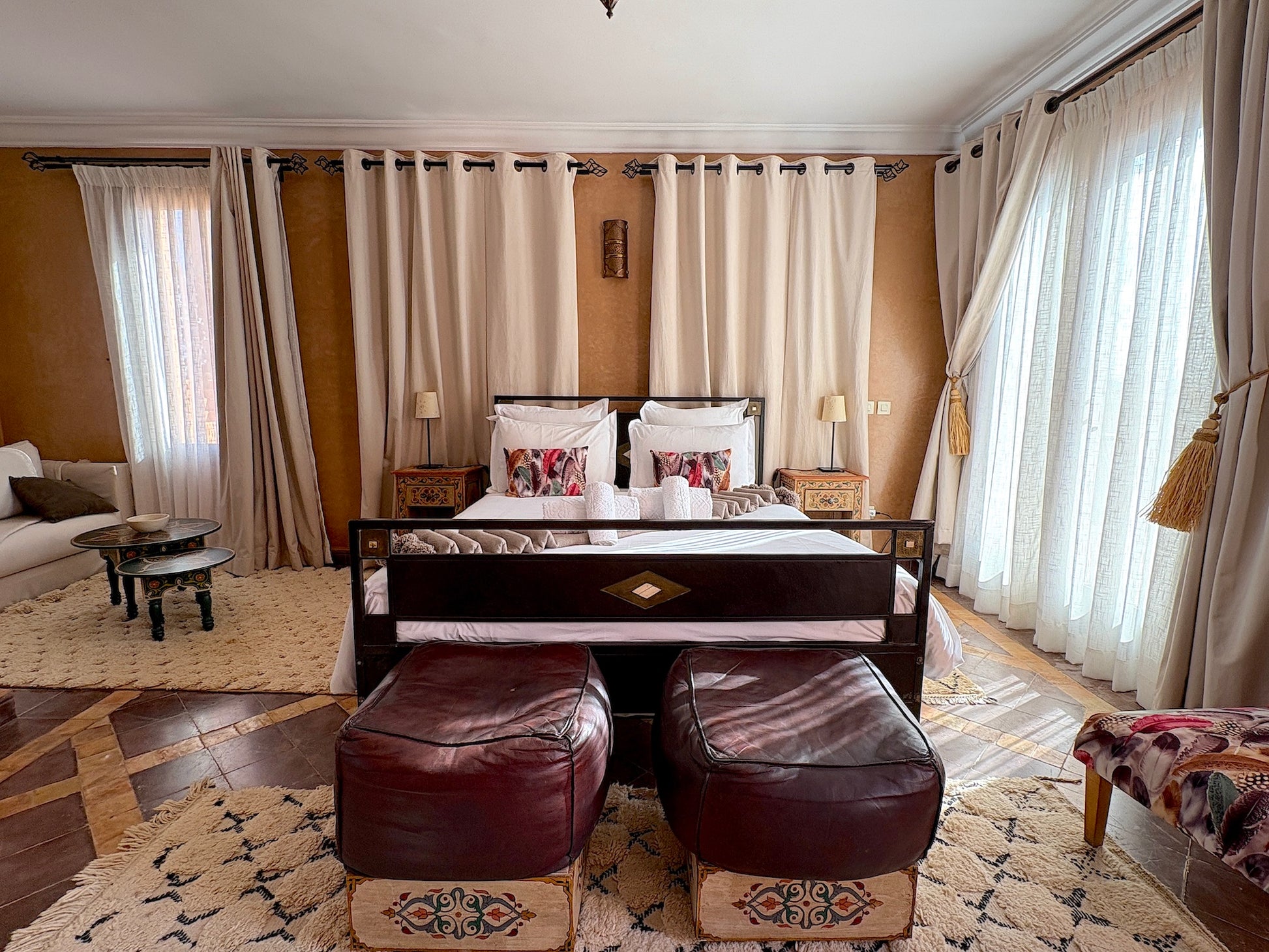 Conçu pour accueillir jusqu’à 14 voyageurs dans une atmosphère raffinée et lumineuse, ce palais aux accents traditionnels vous invite à vivre l’expérience marocaine avec confort, élégance et une touche de magie.