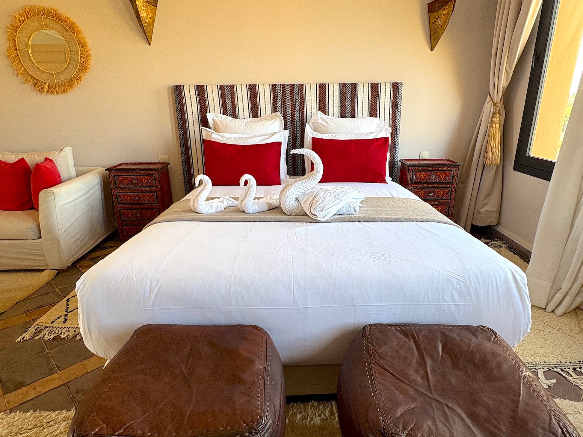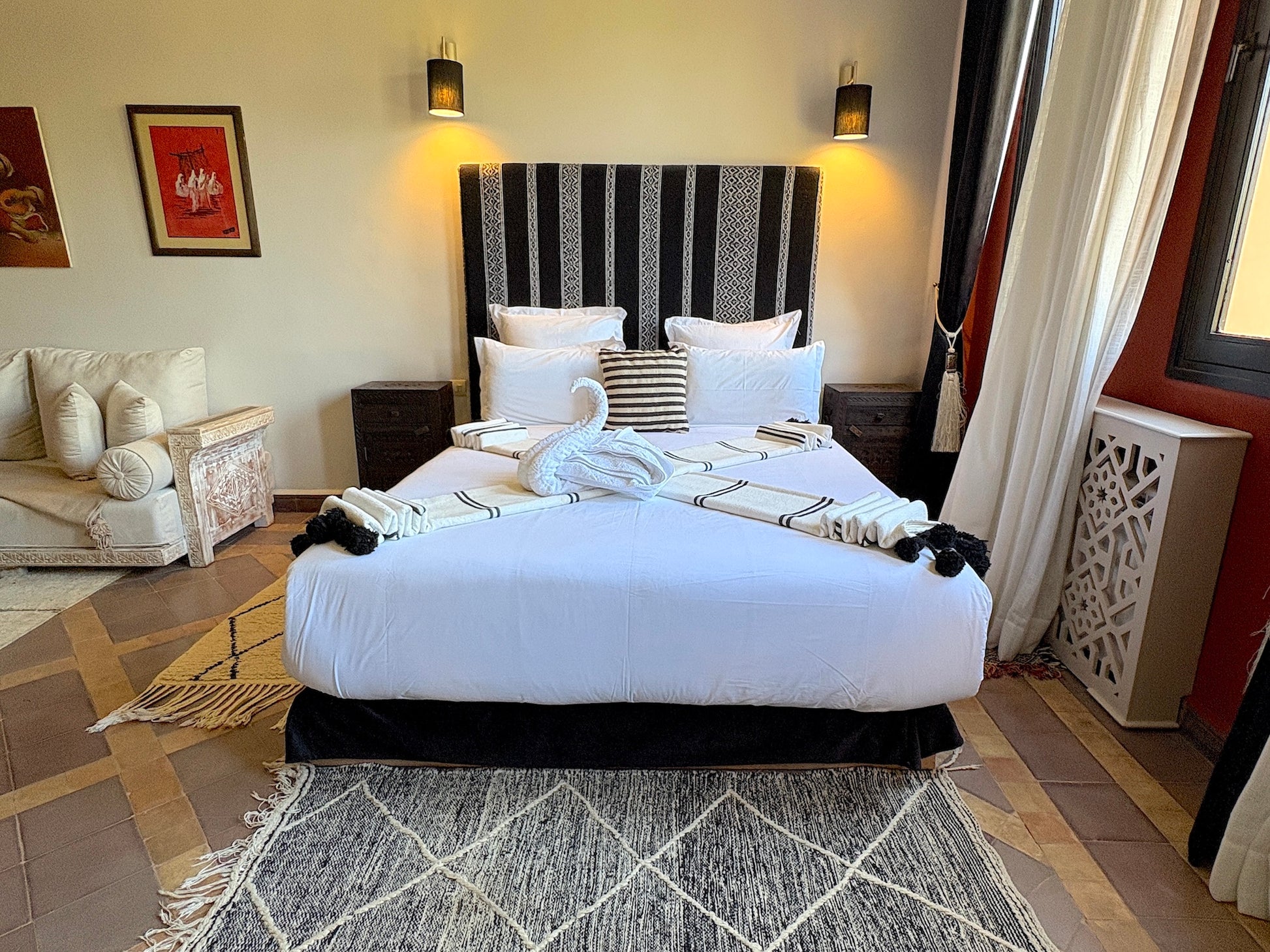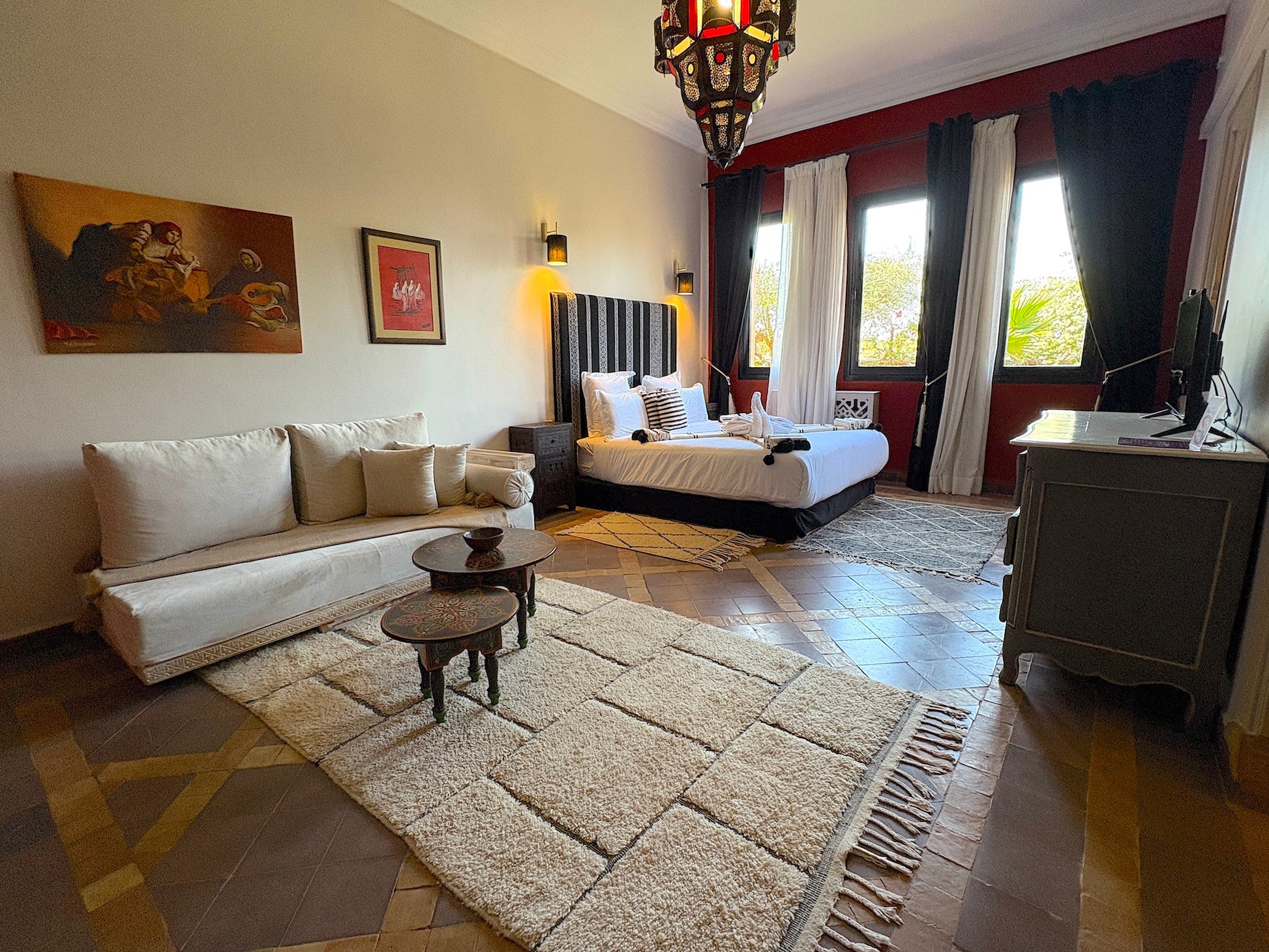 Conçu pour accueillir jusqu’à 14 voyageurs dans une atmosphère raffinée et lumineuse, ce palais aux accents traditionnels vous invite à vivre l’expérience marocaine avec confort, élégance et une touche de magie.