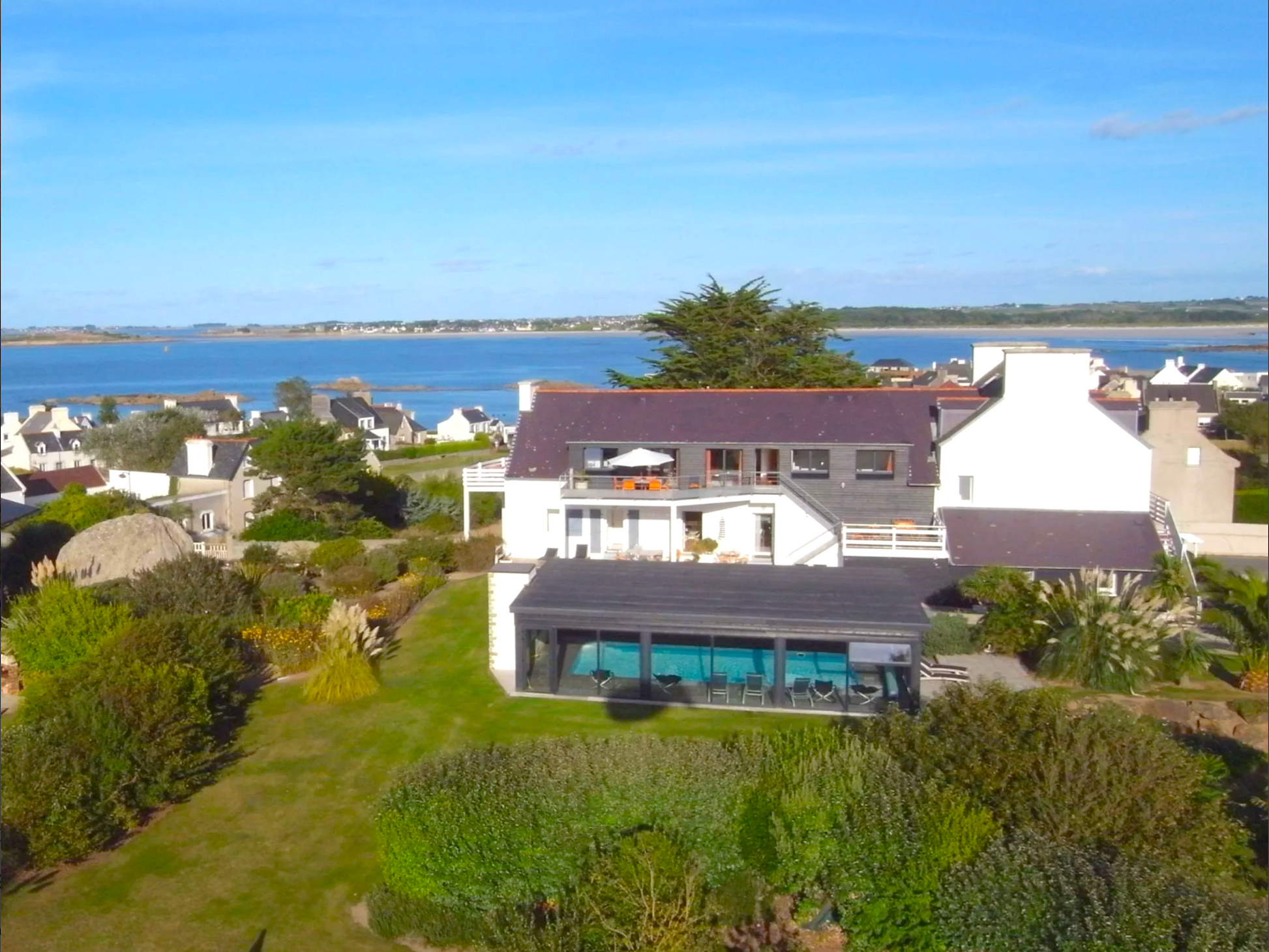 Dominant le port de Moguériec, la Villa Armoréa offre un séjour d’exception pour 12 personnes. Spacieuse et lumineuse, elle dispose de 6 chambres, 5 salles de bain, 2 cuisines et d’une piscine intérieure chauffée. Son grand jardin de 4000 m² avec barbecue, jeux et terrasses vue mer invite à la détente. À deux pas, la plage et le sentier du GR34 promettent une expérience bretonne inoubliable entre nature et élégance.