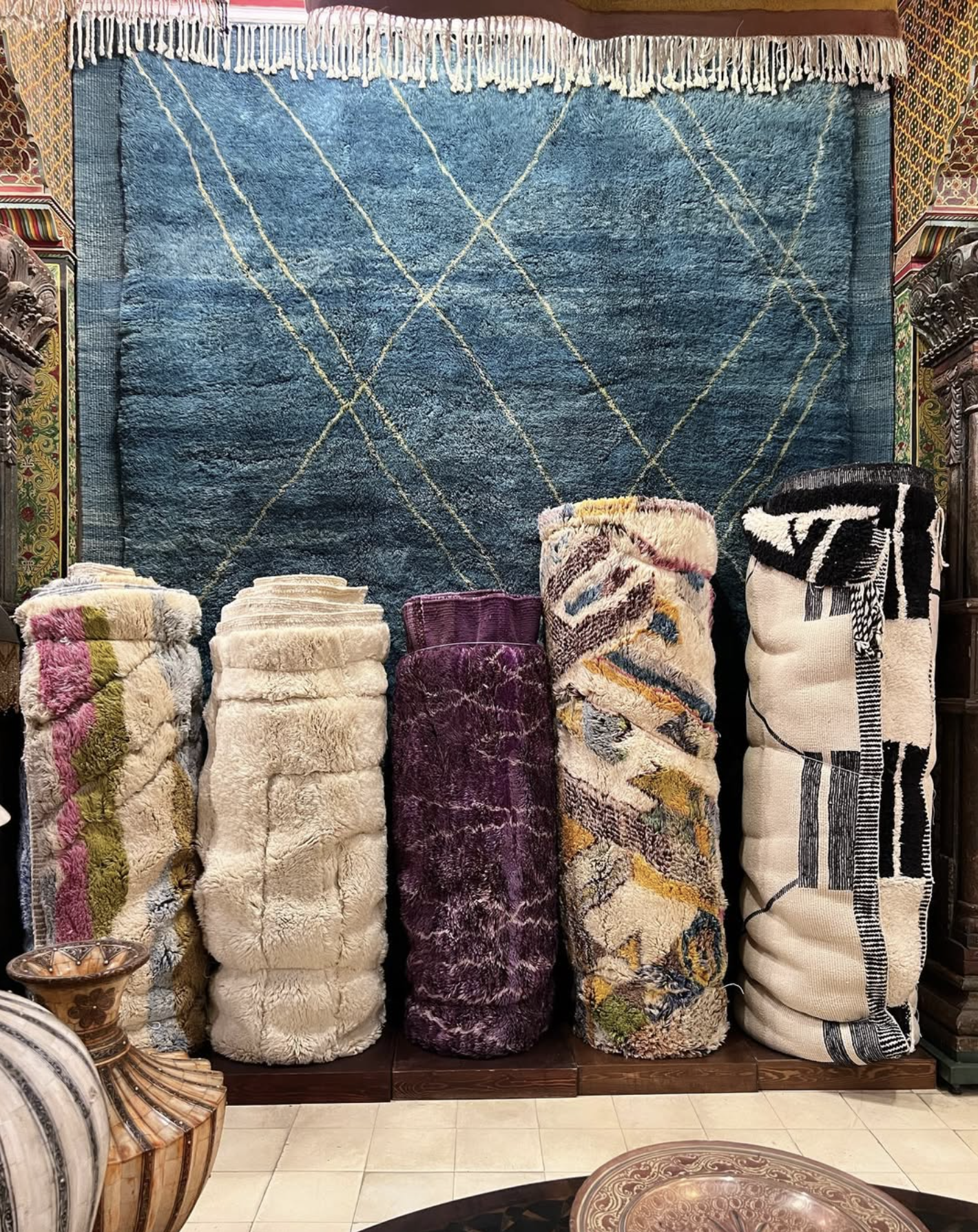 Poussez les portes d’une boutique de tapis marocains et laissez-vous séduire par le savoir-faire ancestral des artisans.
