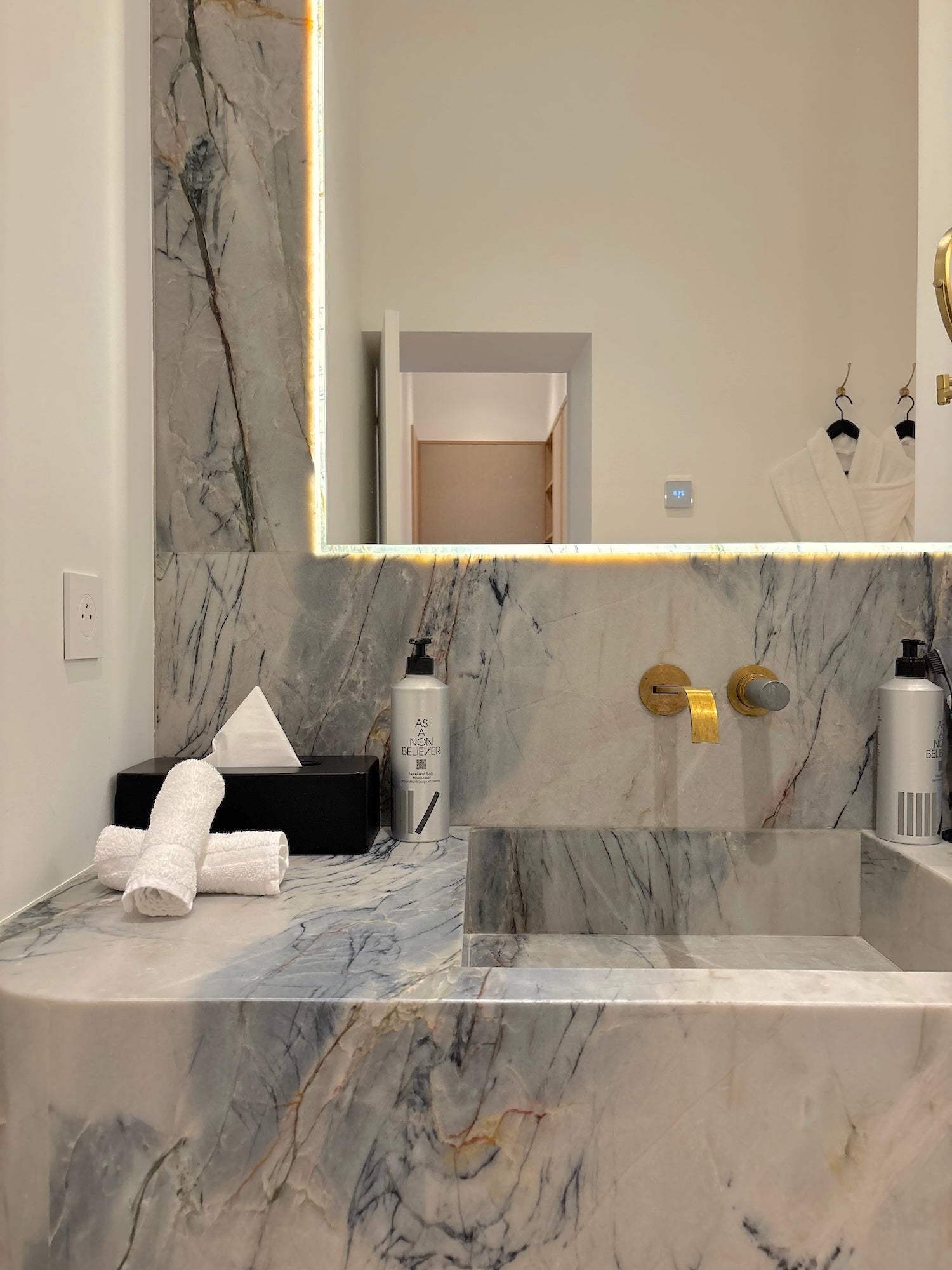 Nous avons été séduits par l’harmonie et la sérénité du lieu. L’espace est généreux, parfaitement agencé, et l’esthétique Arte Povera donne une âme unique à l’appartement. C’est beau, apaisant, chaleureux. Mention spéciale pour la luminosité incroyable et pour la dining room, parfaite pour un dîner privé. -