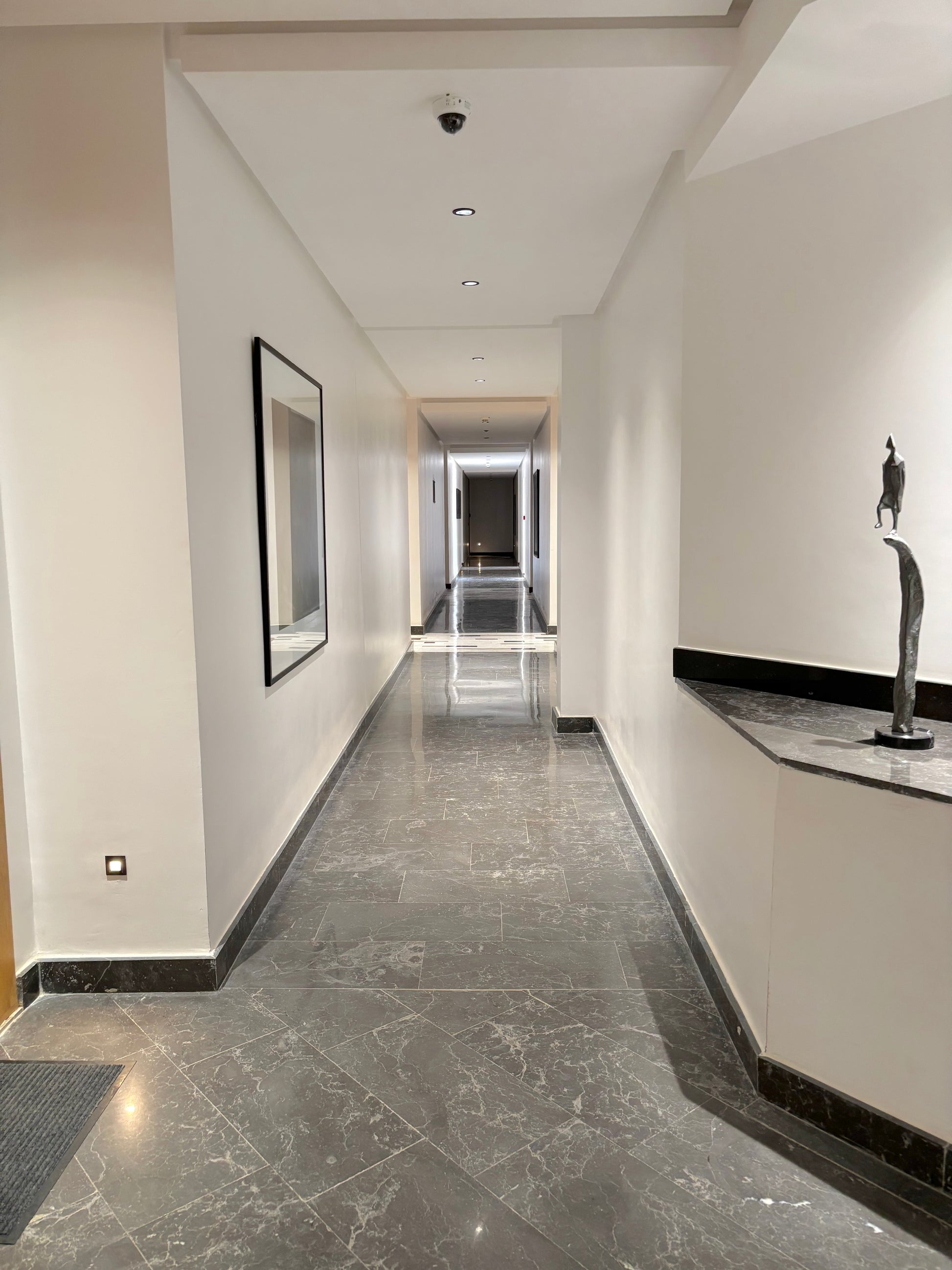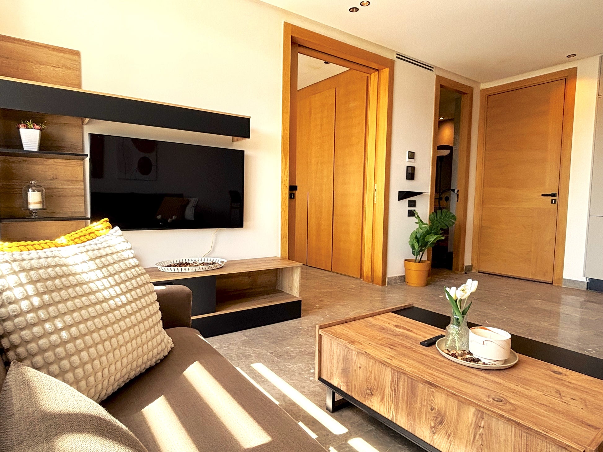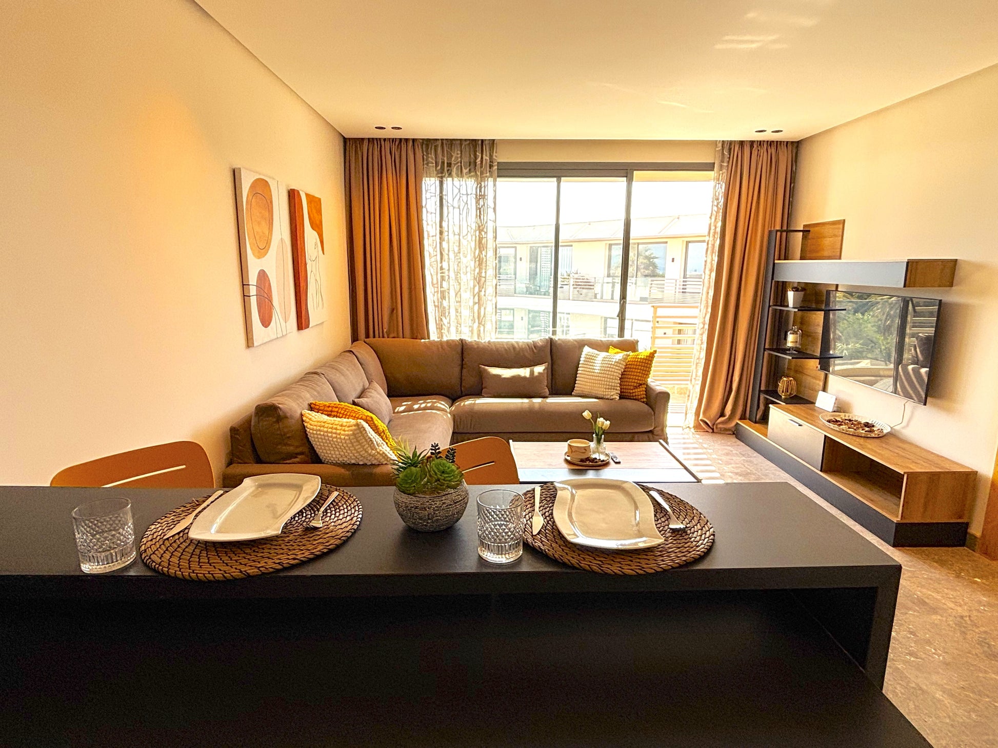 L’appartement se situe dans le quartier ultra prisé d’Aïn Diab, à Casablanca, entre palmiers, rivages dorés et adresses emblématiques. À deux pas, la corniche animée déroule ses cafés de bord de mer, ses restaurants gastronomiques, ses clubs élégants et ses plages privées.