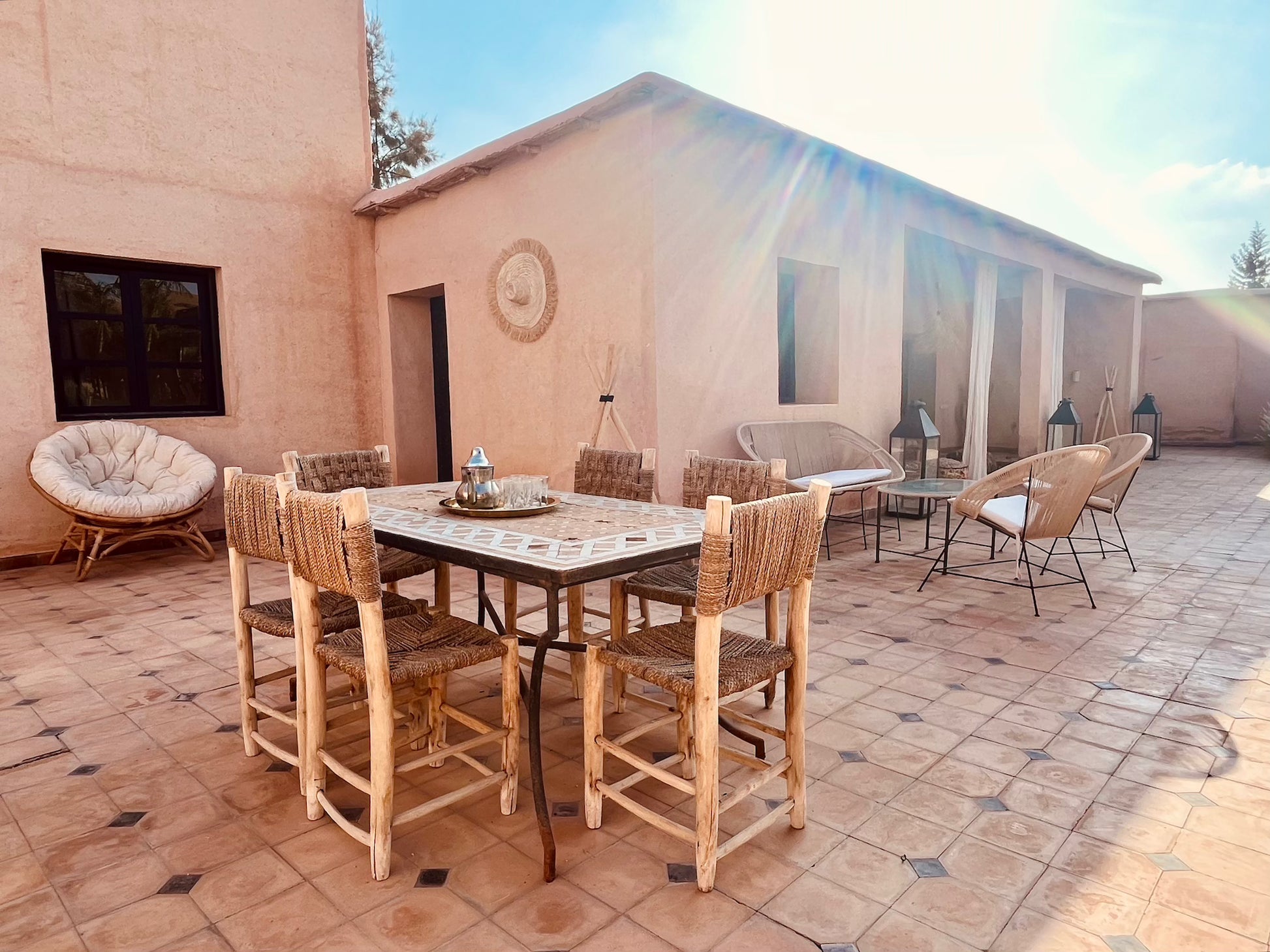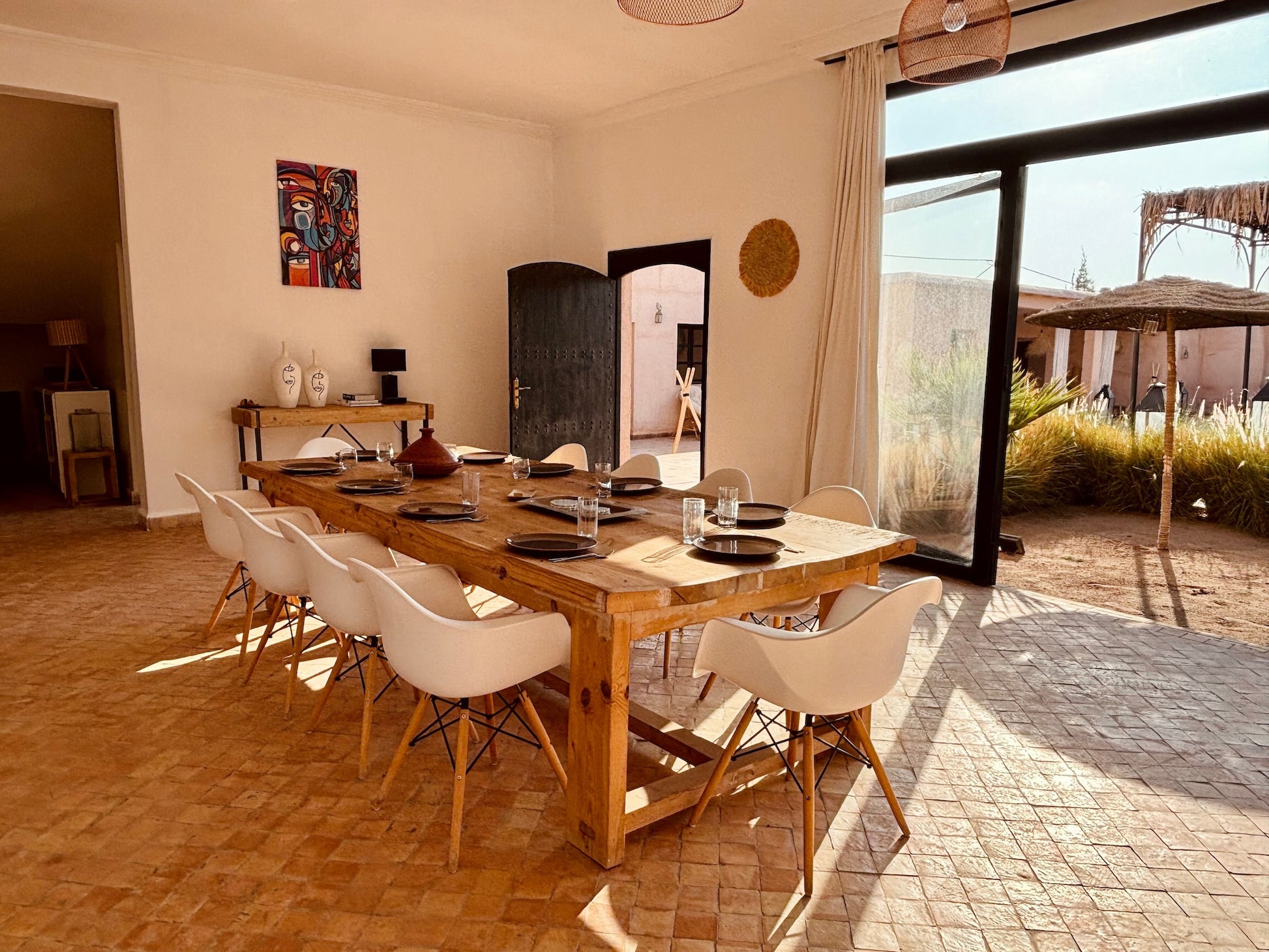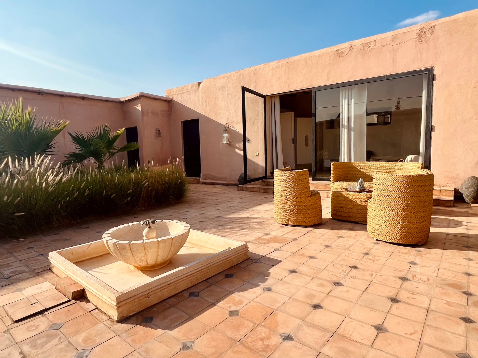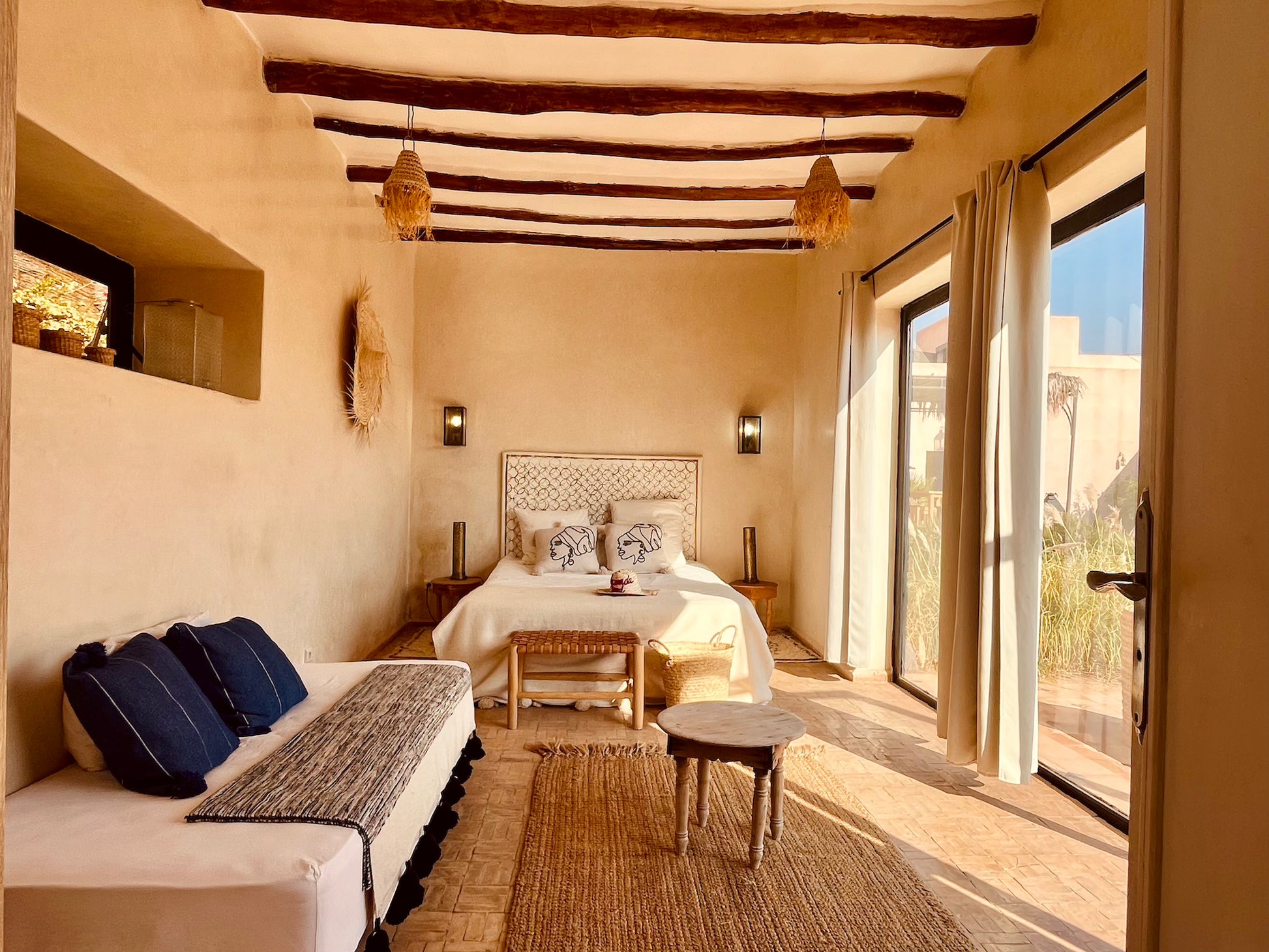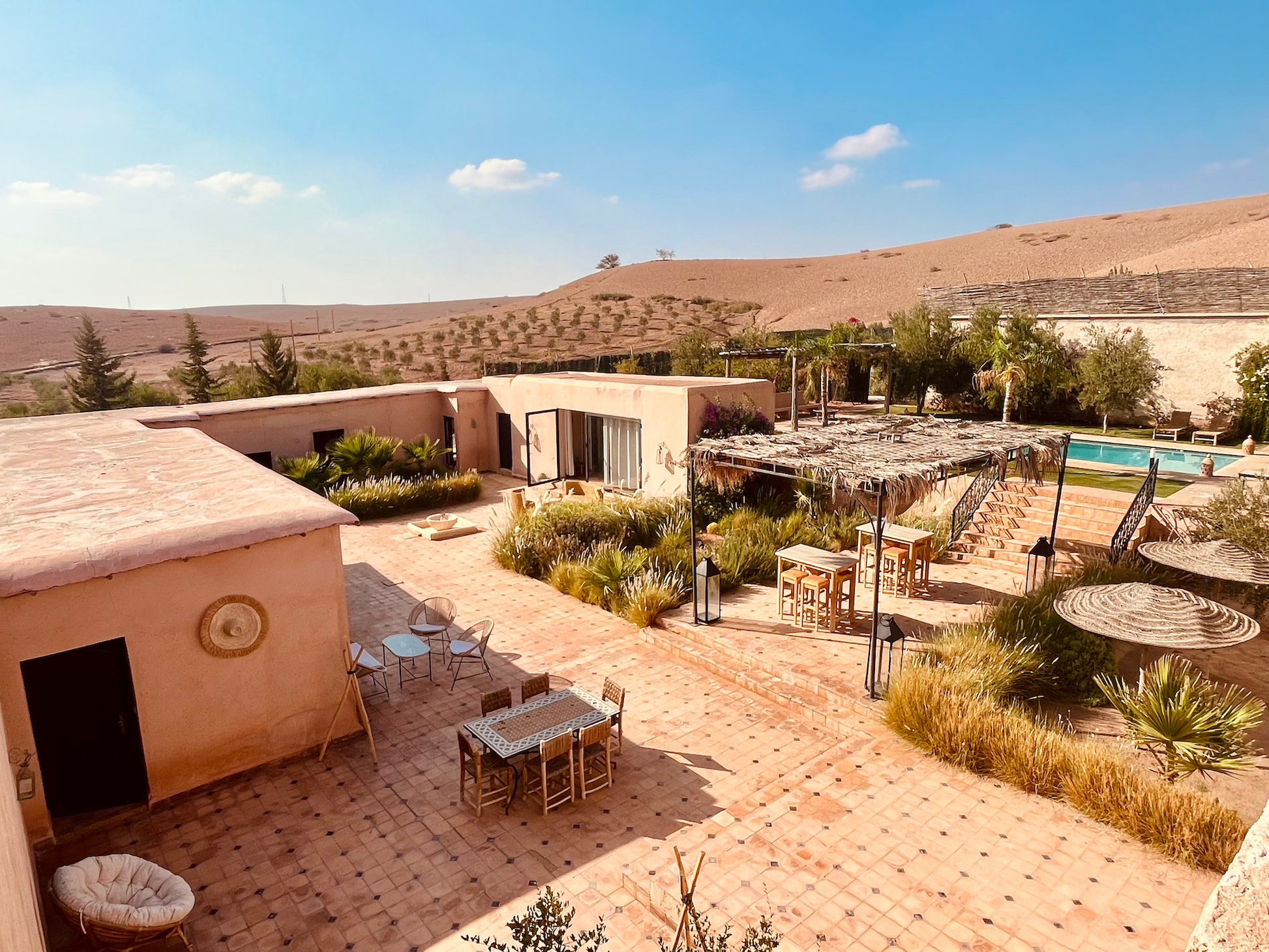 Plongez au cœur du désert d'Aït Ourir et découvrez une demeure d’exception. Ce véritable havre de paix, vous invite avec son charme marocain et sa modernité.
