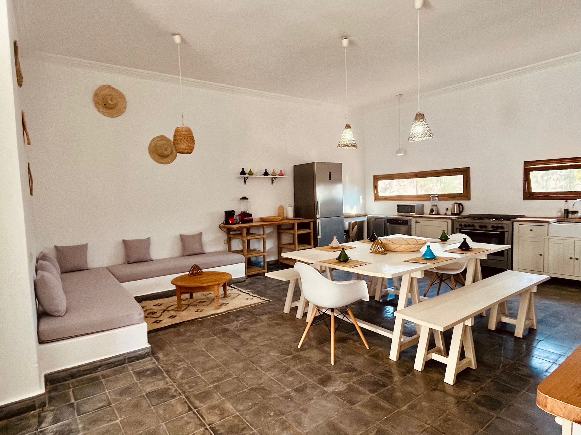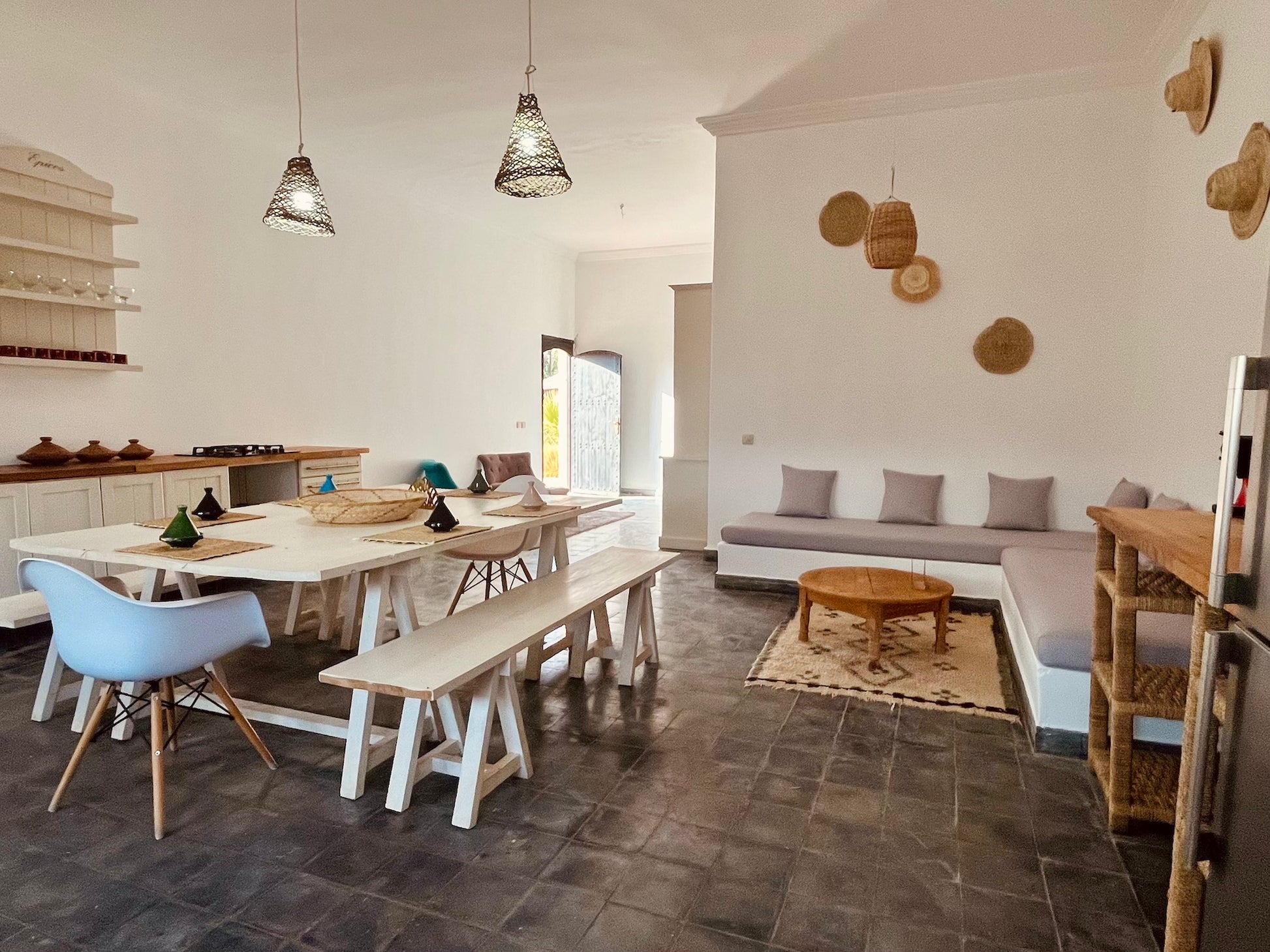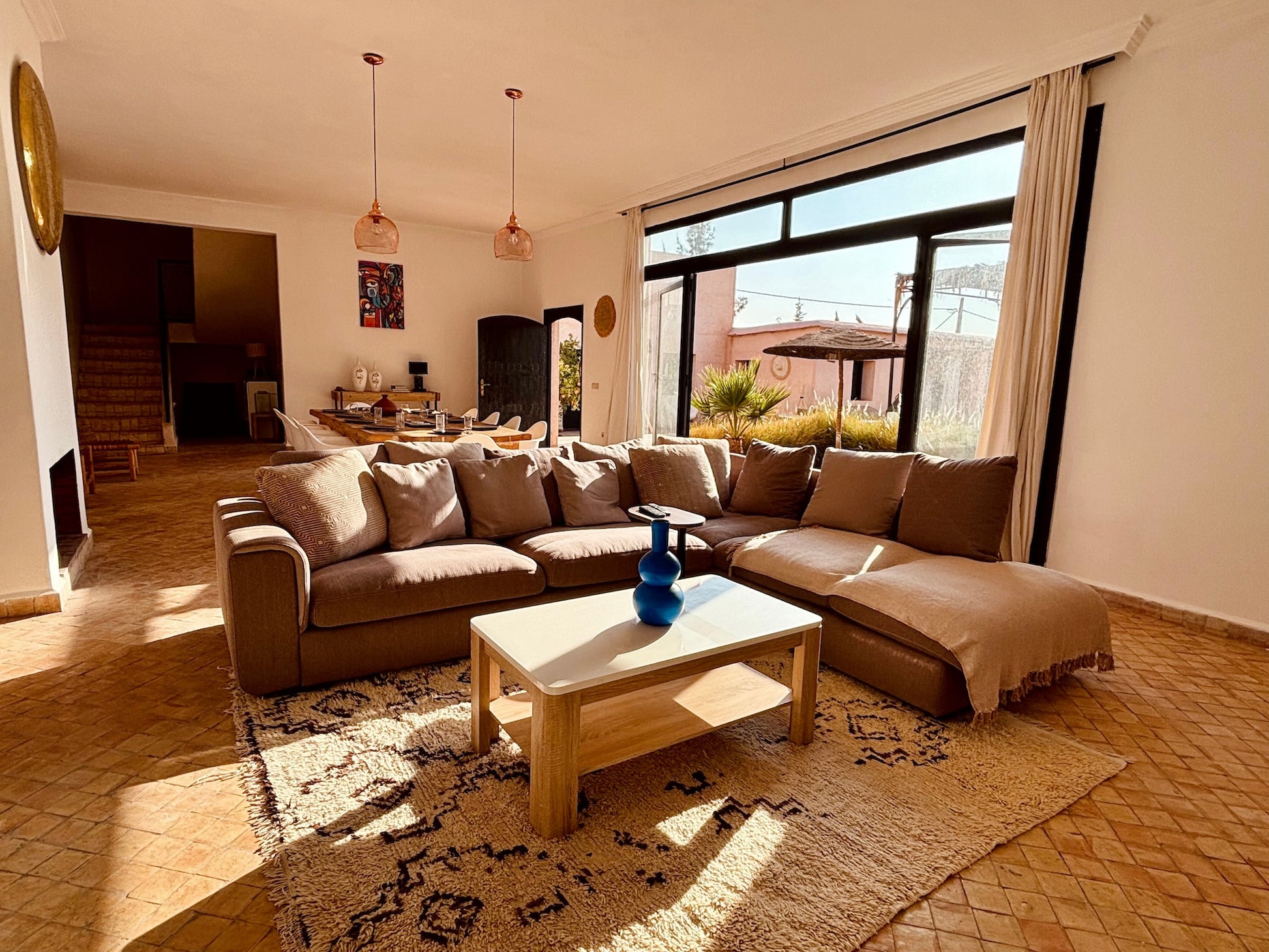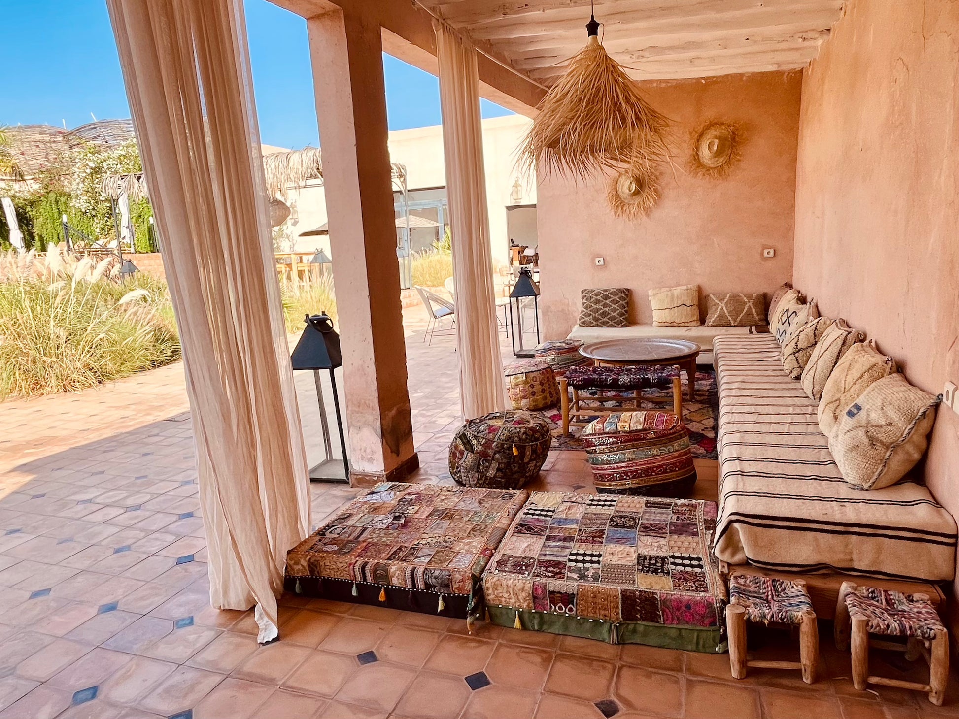 Situé au milieu du désert d'Aït Ourir, la villa est à environ 45 minutes du centre de Marrakech. Ce véritable havre de paix est idéal pour une retraite spirituelle, une activité de yoga, ou un séjour en famille.