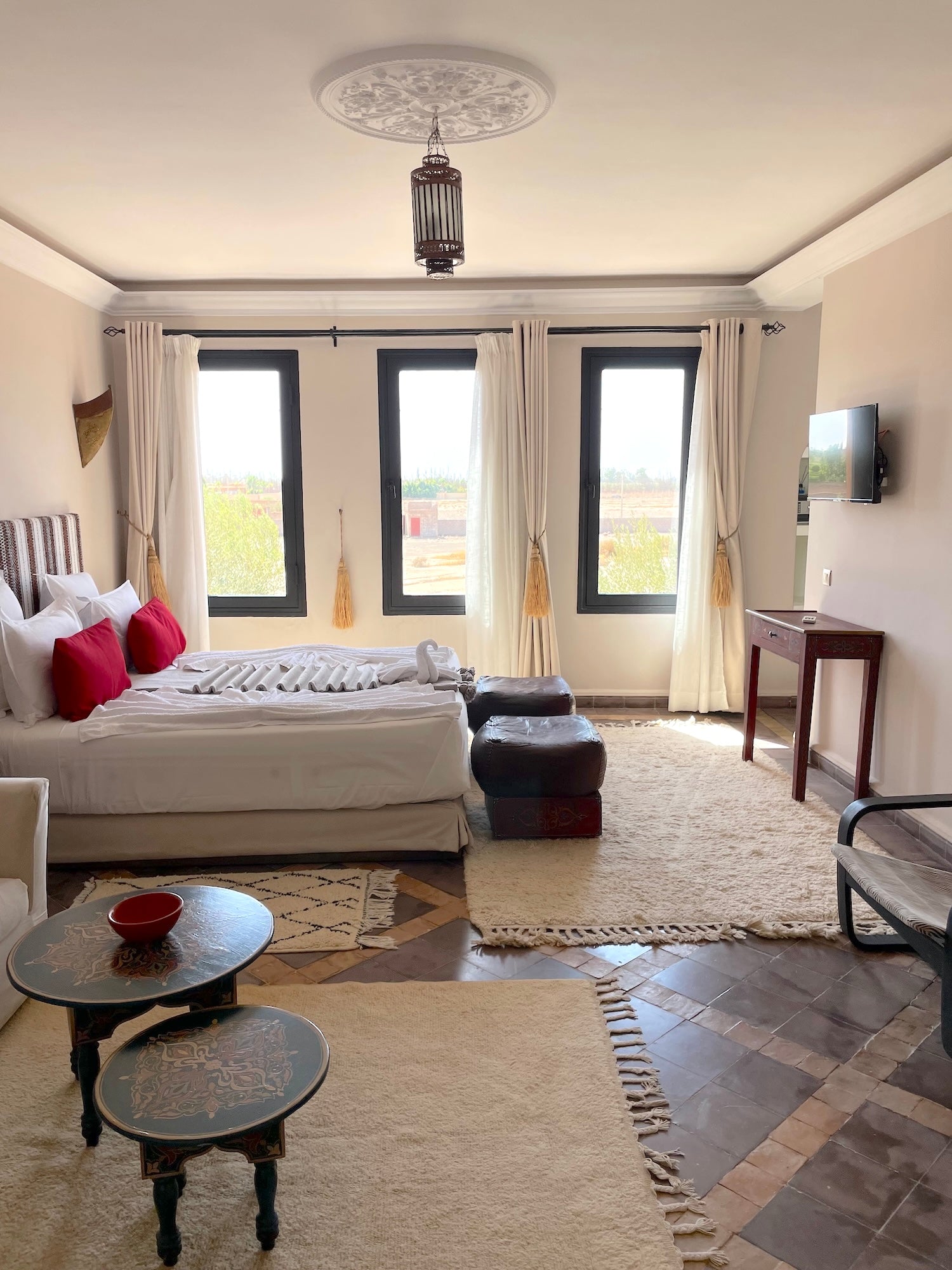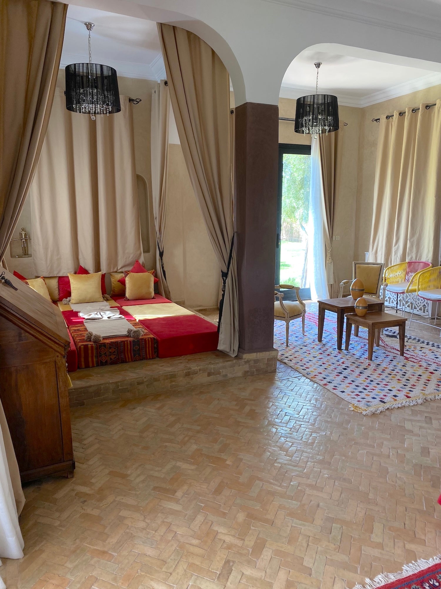 Restaurants, souks, jardins secrets et palais historiques sont facilement accessibles en voiture ou en transfert privé. Vous êtes assez loin pour savourer la sérénité, mais suffisamment proche pour goûter à l’effervescence.