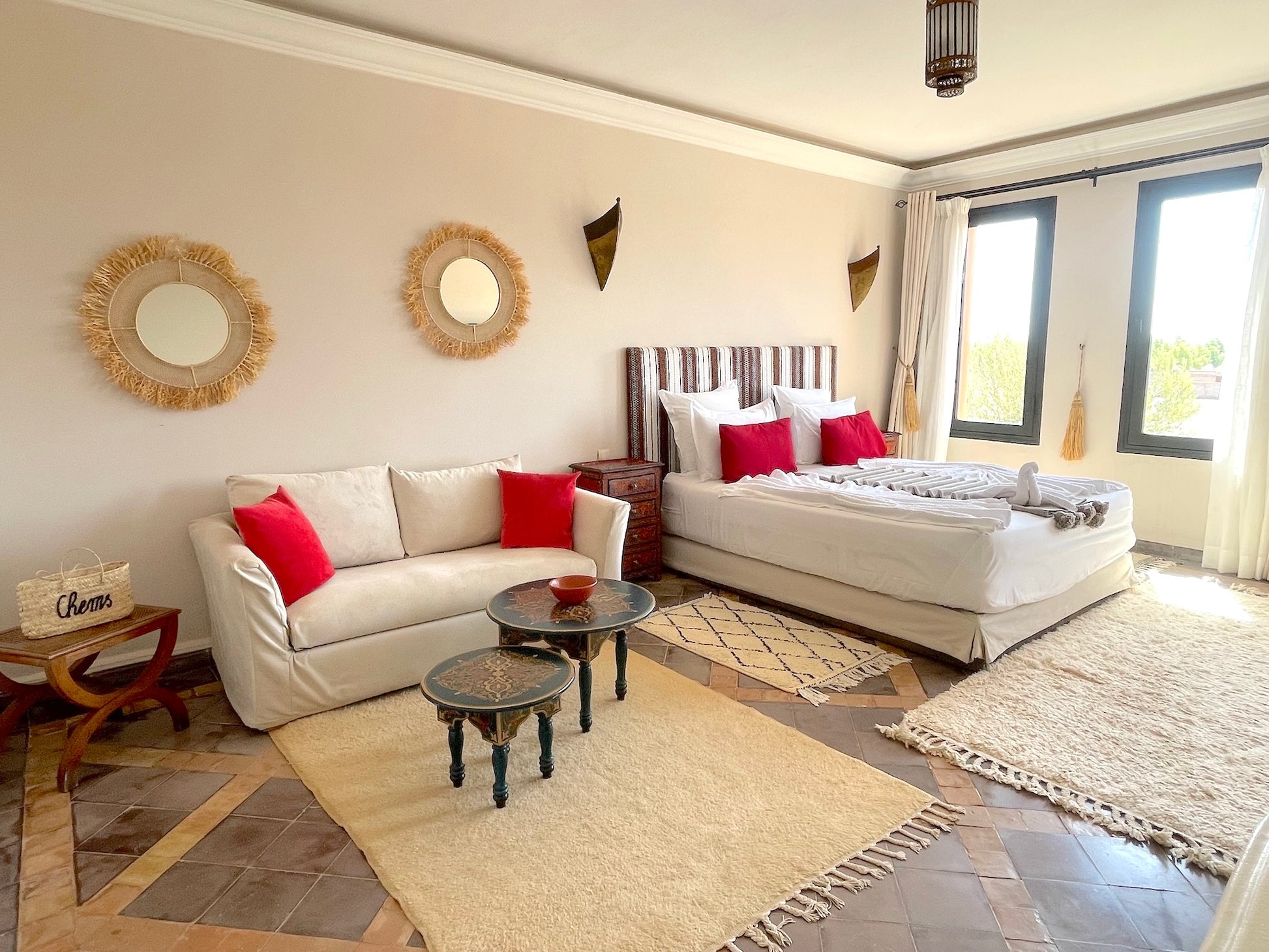 Conçu pour accueillir jusqu’à 14 voyageurs dans une atmosphère raffinée et lumineuse, ce palais aux accents traditionnels vous invite à vivre l’expérience marocaine avec confort, élégance et une touche de magie.
