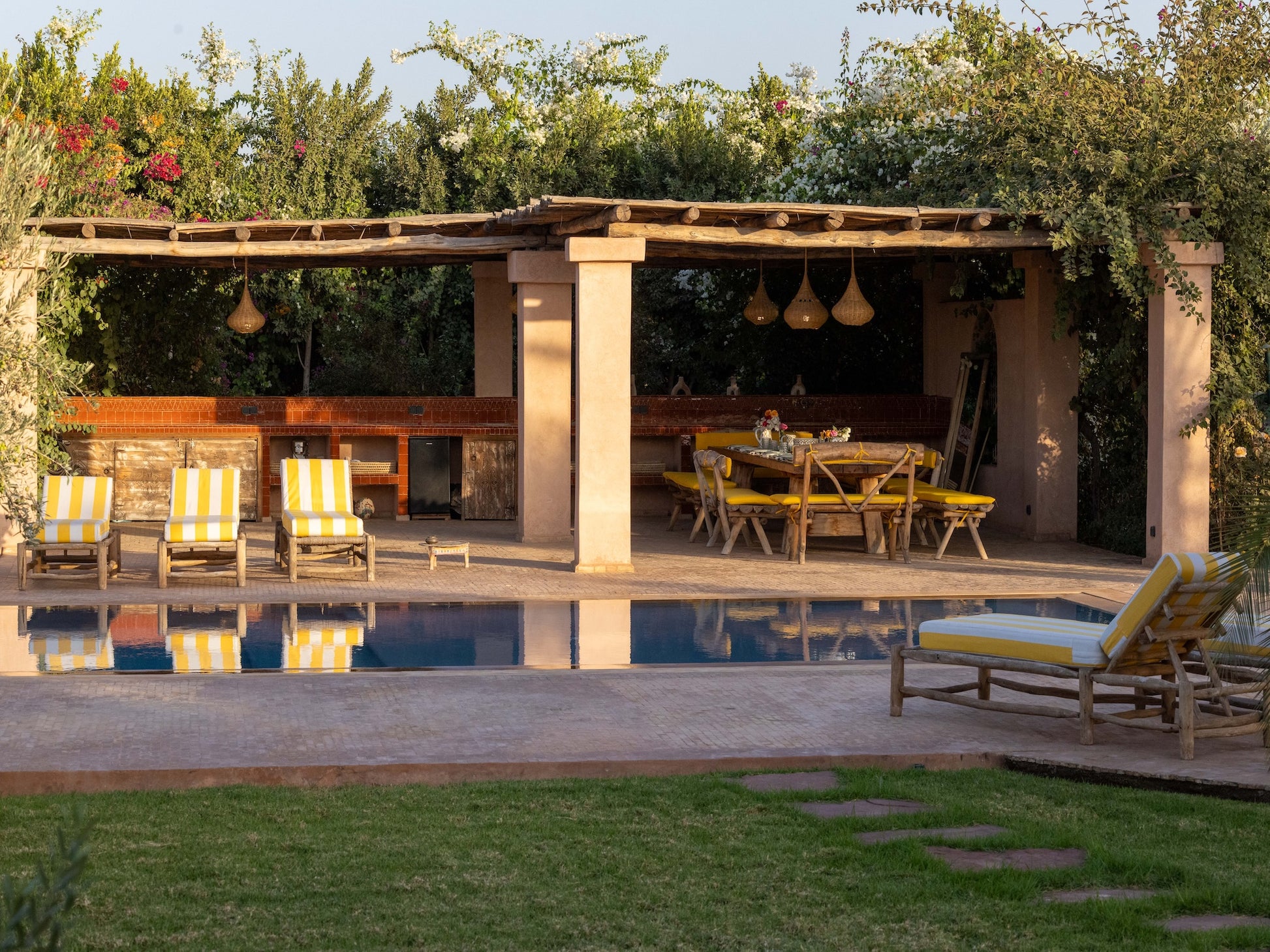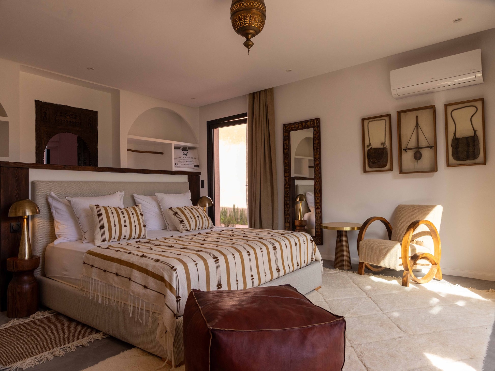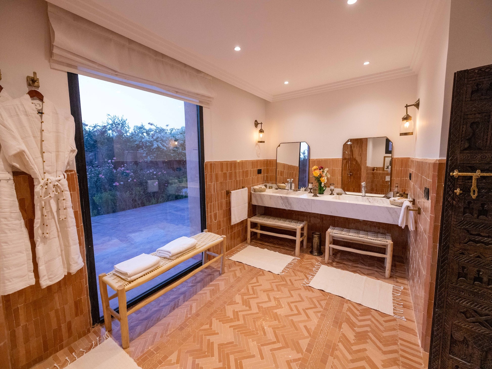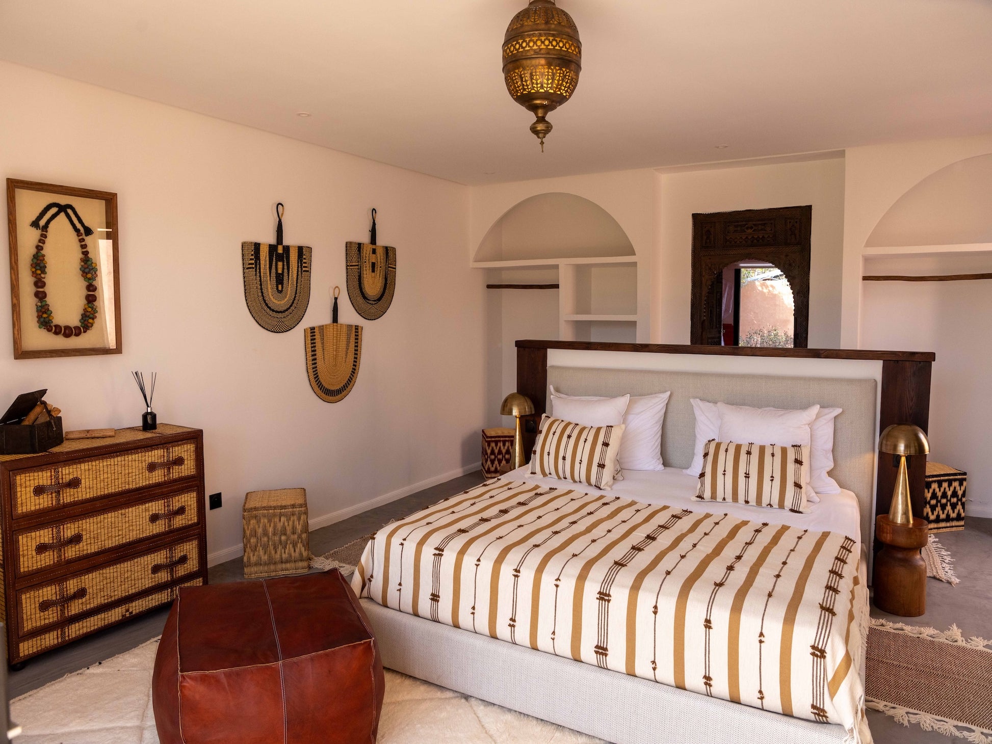 Nichée au cœur d’un domaine privé avec vue panoramique sur les montagnes de l’Atlas, cette propriété d’exception peut accueillir jusqu’à 16 voyageurs dans 8 chambres de luxe. Elle se compose d’un riad principal de 300 m² avec cour centrale et de 4 suites indépendantes avec terrasses privées. À l’extérieur, une piscine au sel chauffée de 21 mètres, un espace brasero et de nombreux équipements de loisirs complètent cette expérience unique.