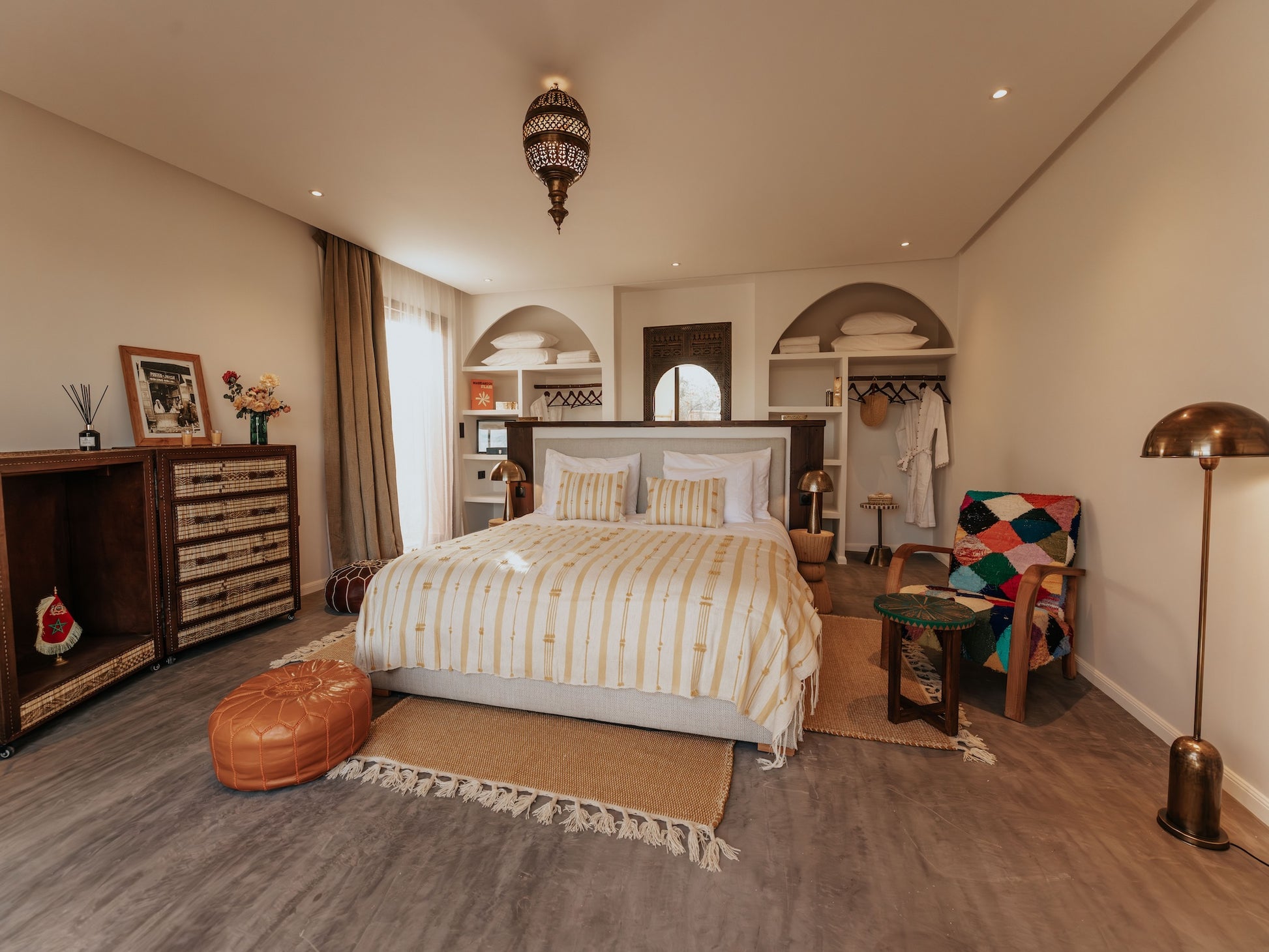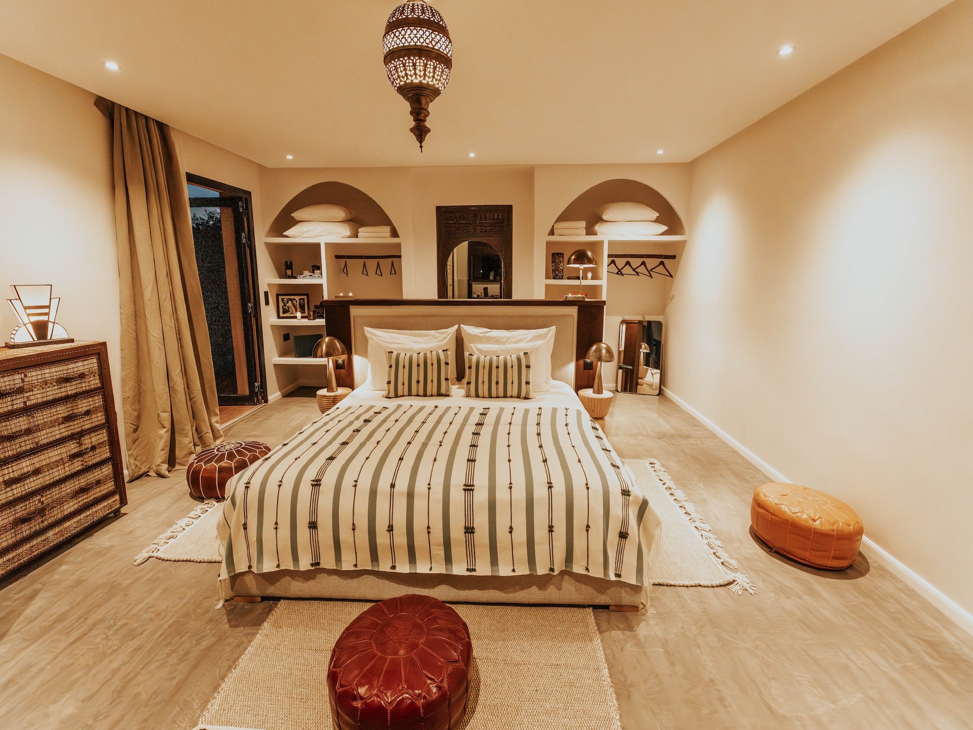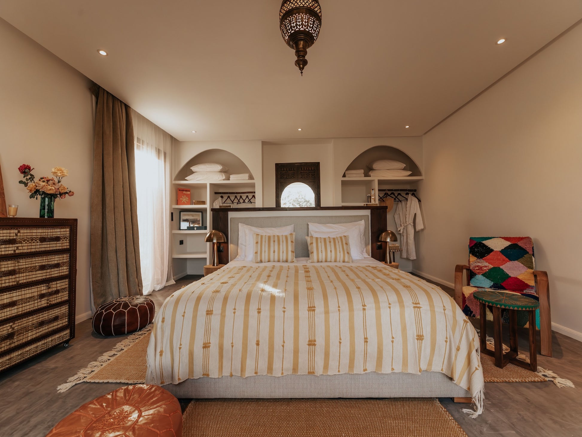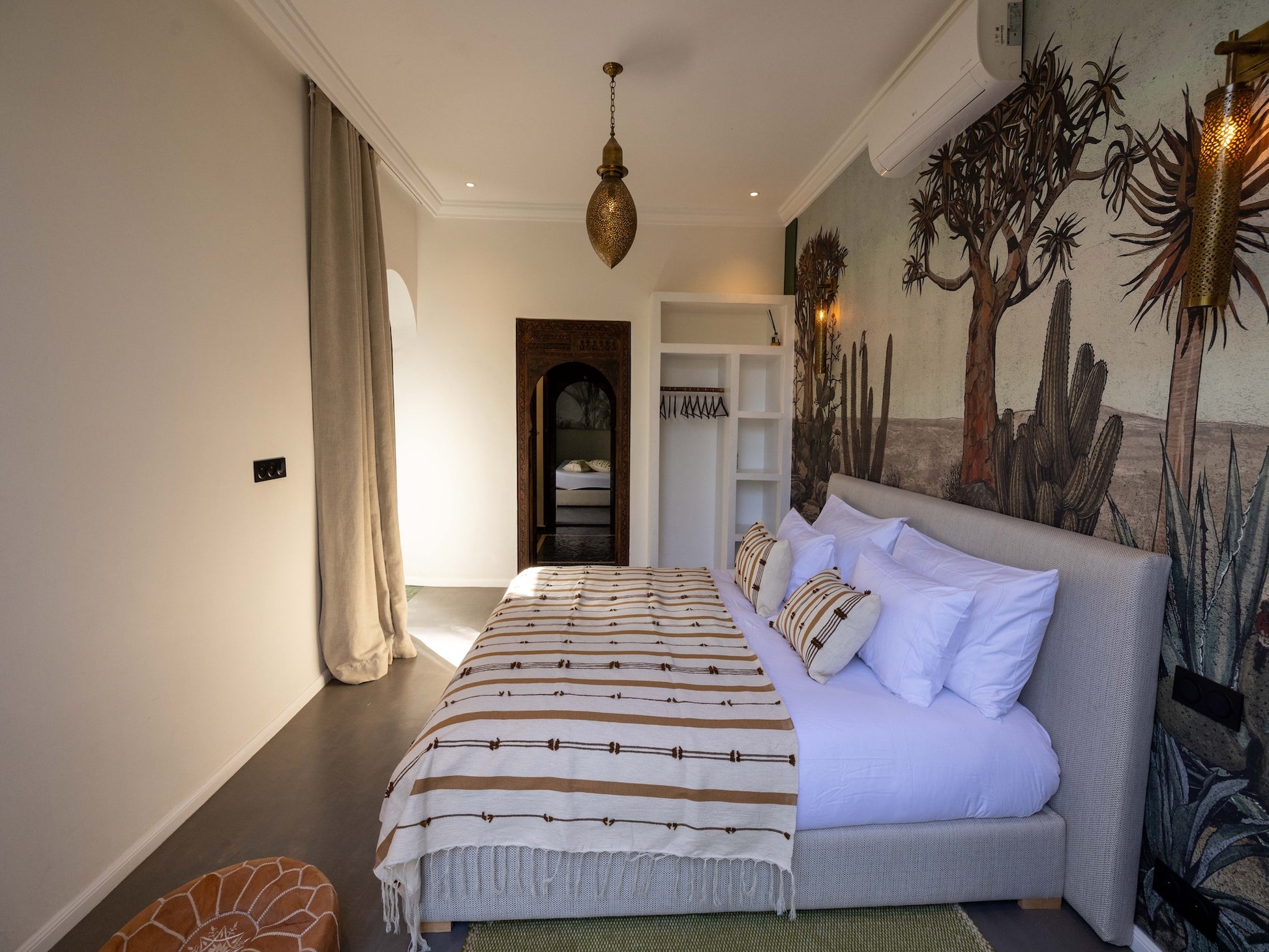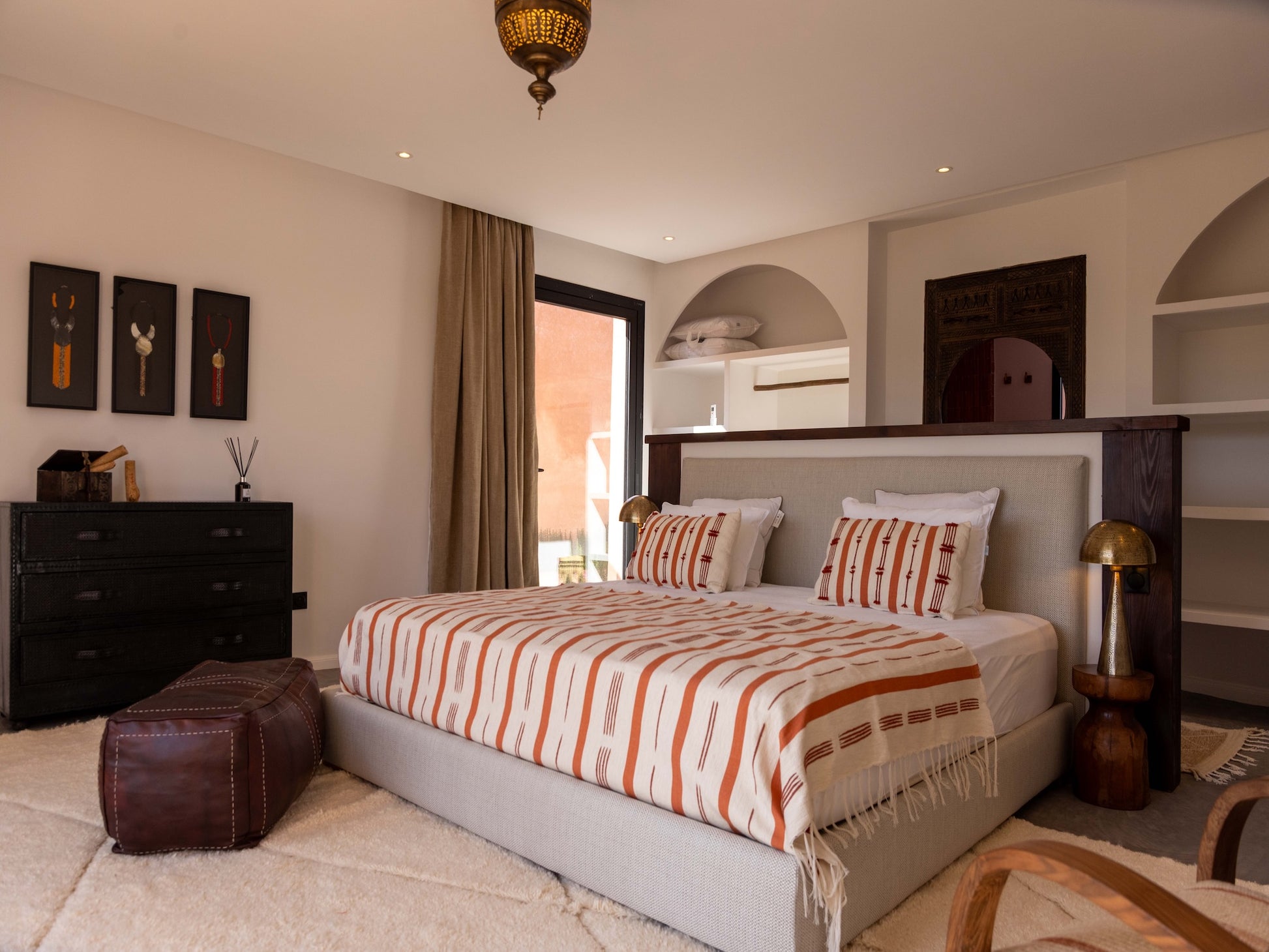 Nichée au cœur d’un domaine privé avec vue panoramique sur les montagnes de l’Atlas, cette propriété d’exception peut accueillir jusqu’à 16 voyageurs dans 8 chambres de luxe. Elle se compose d’un riad principal de 300 m² avec cour centrale et de 4 suites indépendantes avec terrasses privées. À l’extérieur, une piscine au sel chauffée de 21 mètres, un espace brasero et de nombreux équipements de loisirs complètent cette expérience unique.