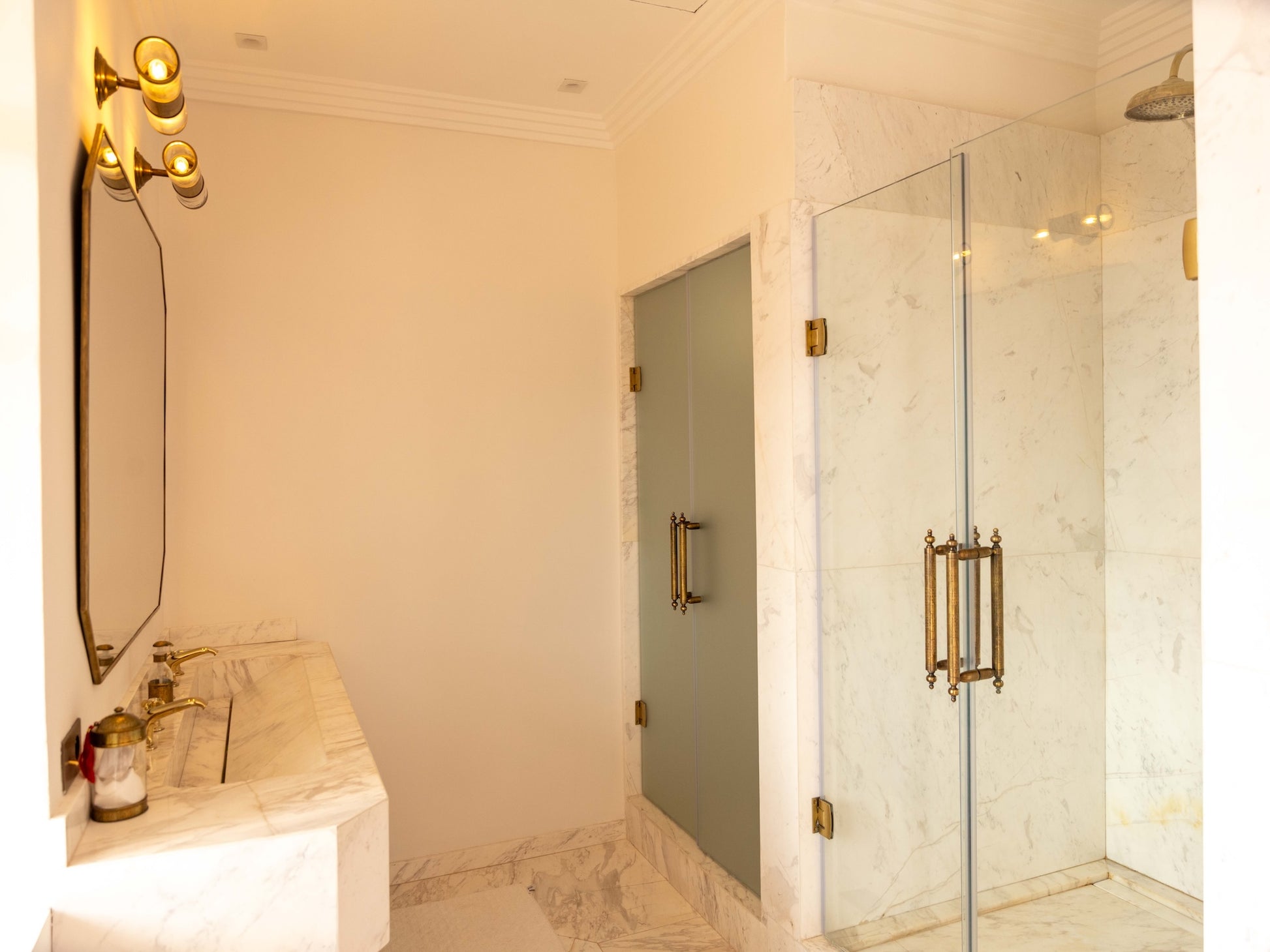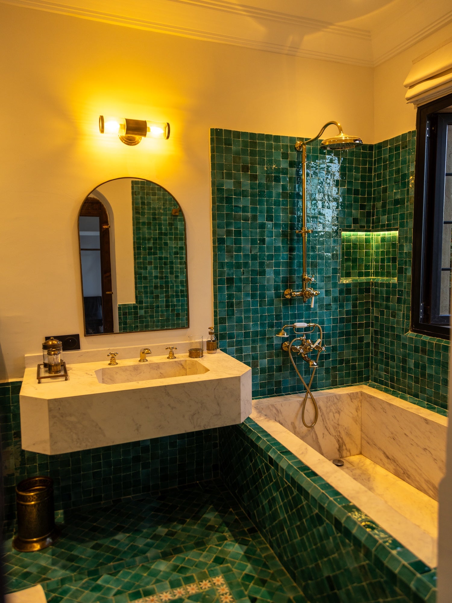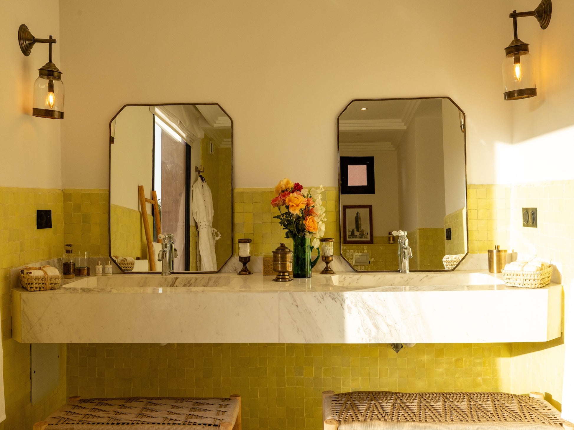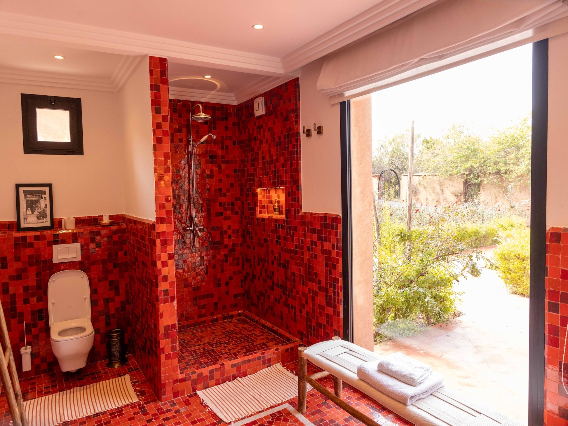 Les voyageurs auront accès à l’ensemble de la propriété et de ses équipements : le riad principal de 300 m², les 4 suites indépendantes avec terrasses privées, les espaces de vie intérieurs et extérieurs ainsi que le parc privé d’un hectare composé de jardins paysagers, d’une oliveraie et d’une roseraie. La piscine au sel chauffée de 21 mètres, le sauna, la salle de sport entièrement équipée avec machine de Pilates, le terrain de padel, le mini terrain de football, le terrain de pétanque, la table de ping-pong et l’espace brasero sont également à votre disposition pour profiter pleinement du domaine et de son cadre exceptionnel face aux montagnes de l’Atlas.