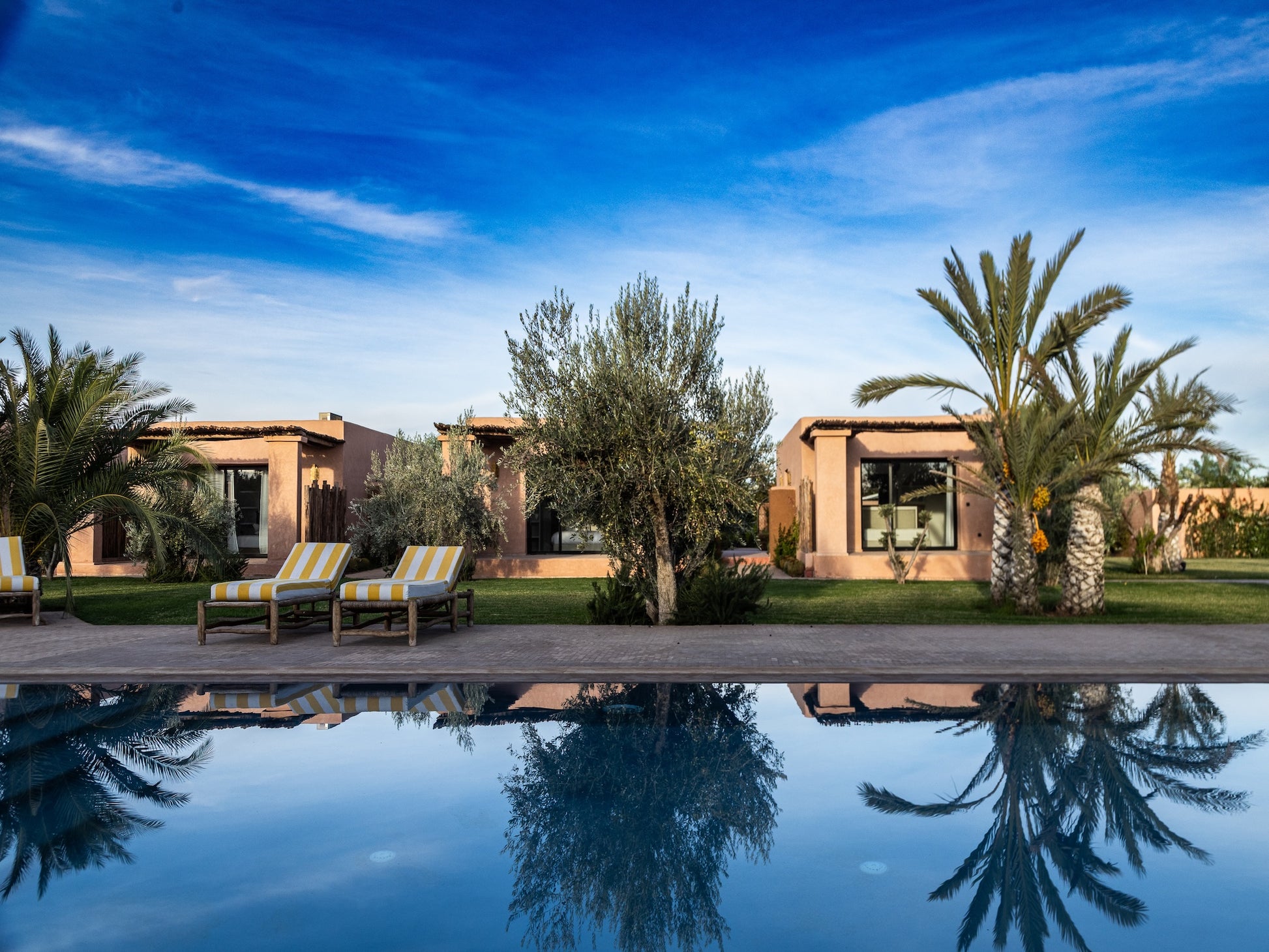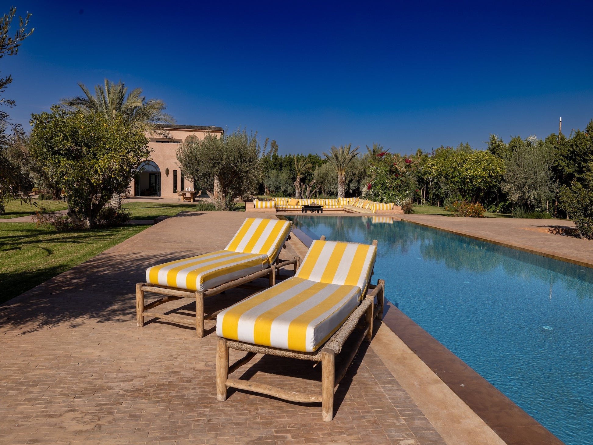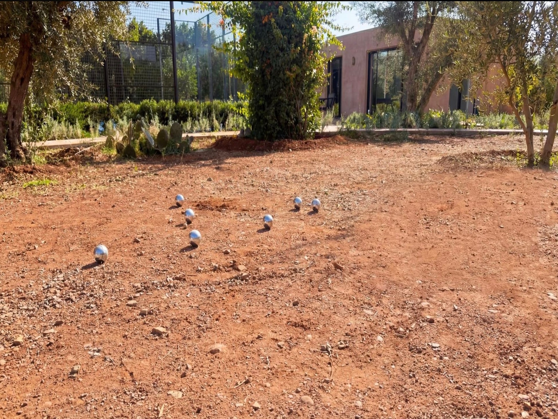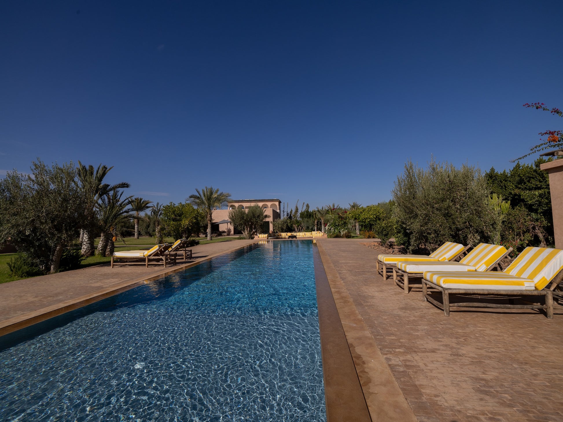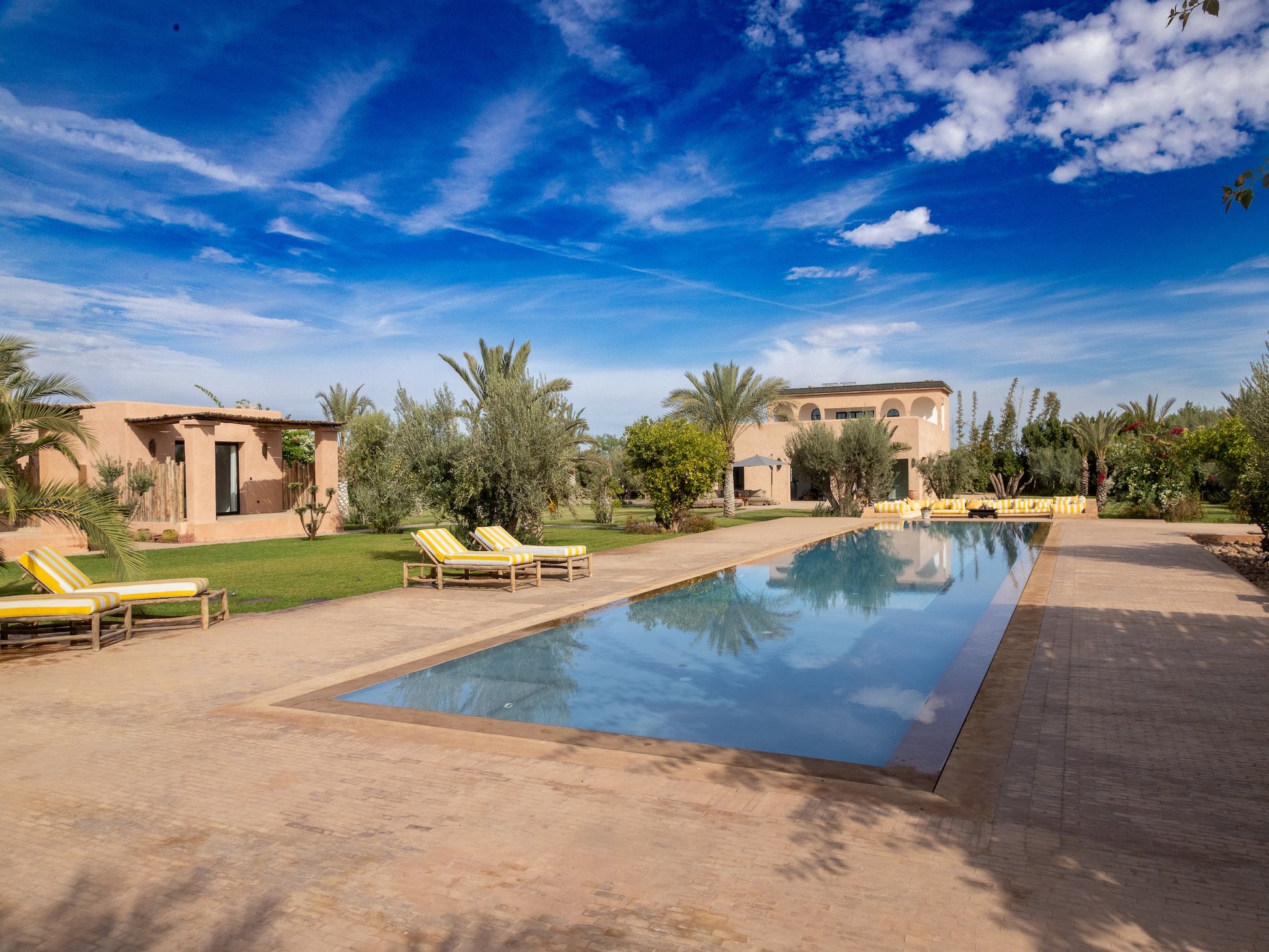 Située dans un environnement calme et préservé à quelques minutes de Marrakech, la propriété bénéficie d’un emplacement idéal pour profiter à la fois de la tranquillité de la campagne et de l’animation de la ville. Vous pourrez facilement rejoindre plusieurs golfs réputés, des restaurants prisés ainsi que diverses activités telles que le karting, les balades dans l’Atlas ou encore des excursions dans le désert d’Agafay. Le centre-ville de Marrakech et ses lieux emblématiques comme la médina, les souks ou la célèbre place Jemaa el-Fna restent accessibles en une vingtaine de minutes, offrant un parfait équilibre entre détente et découverte.