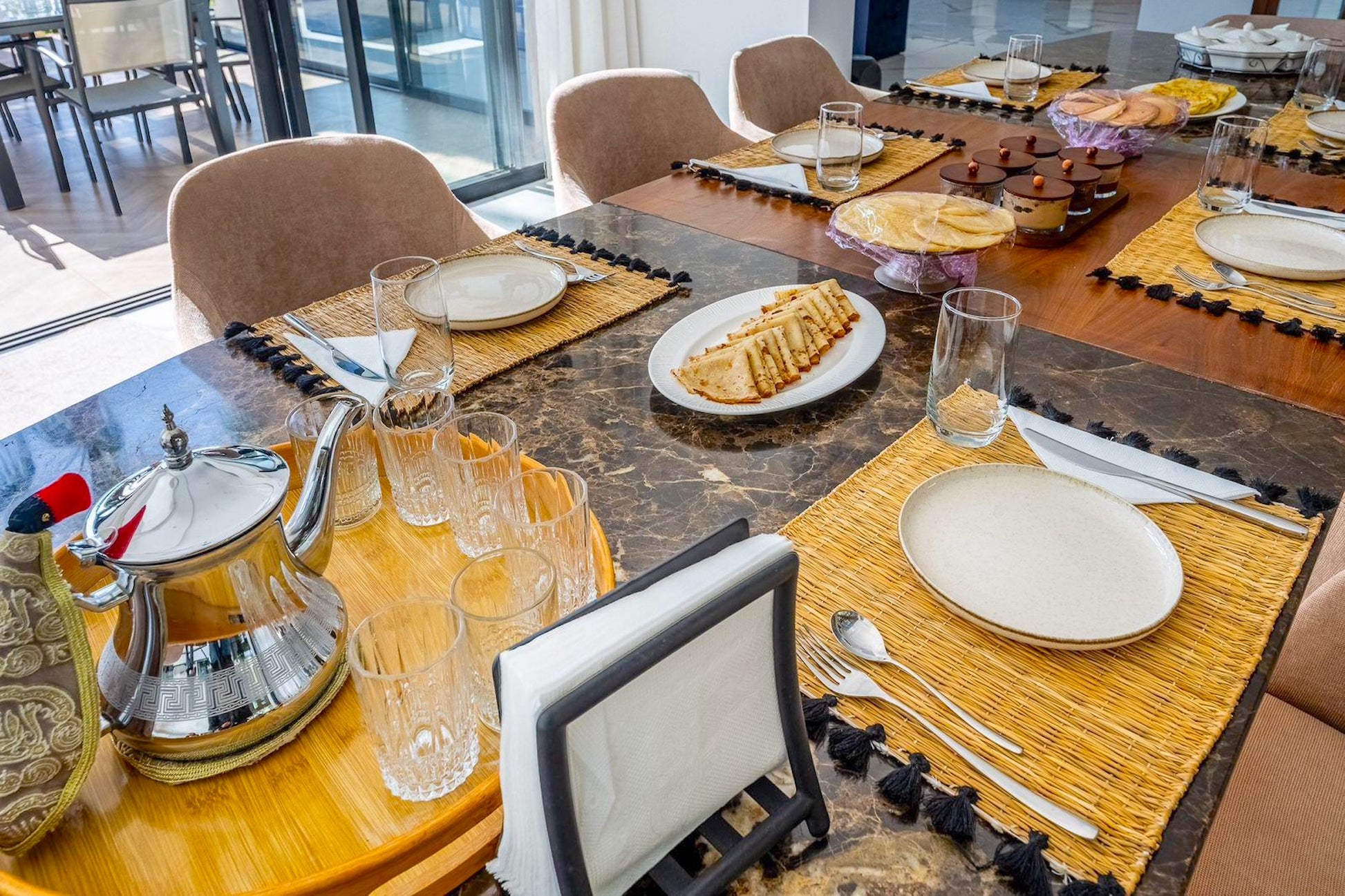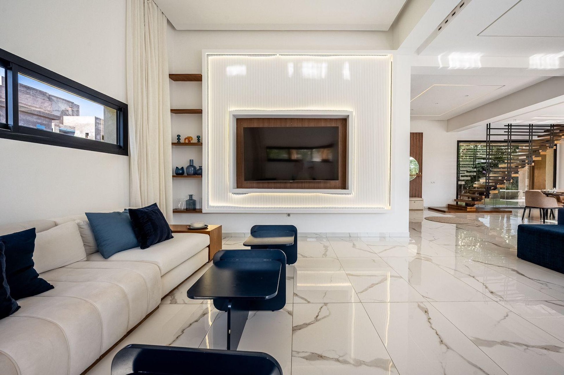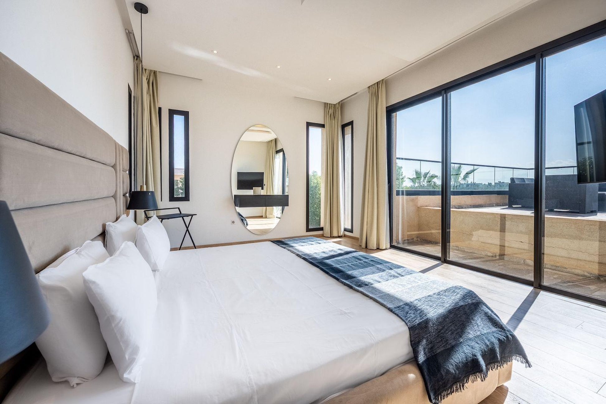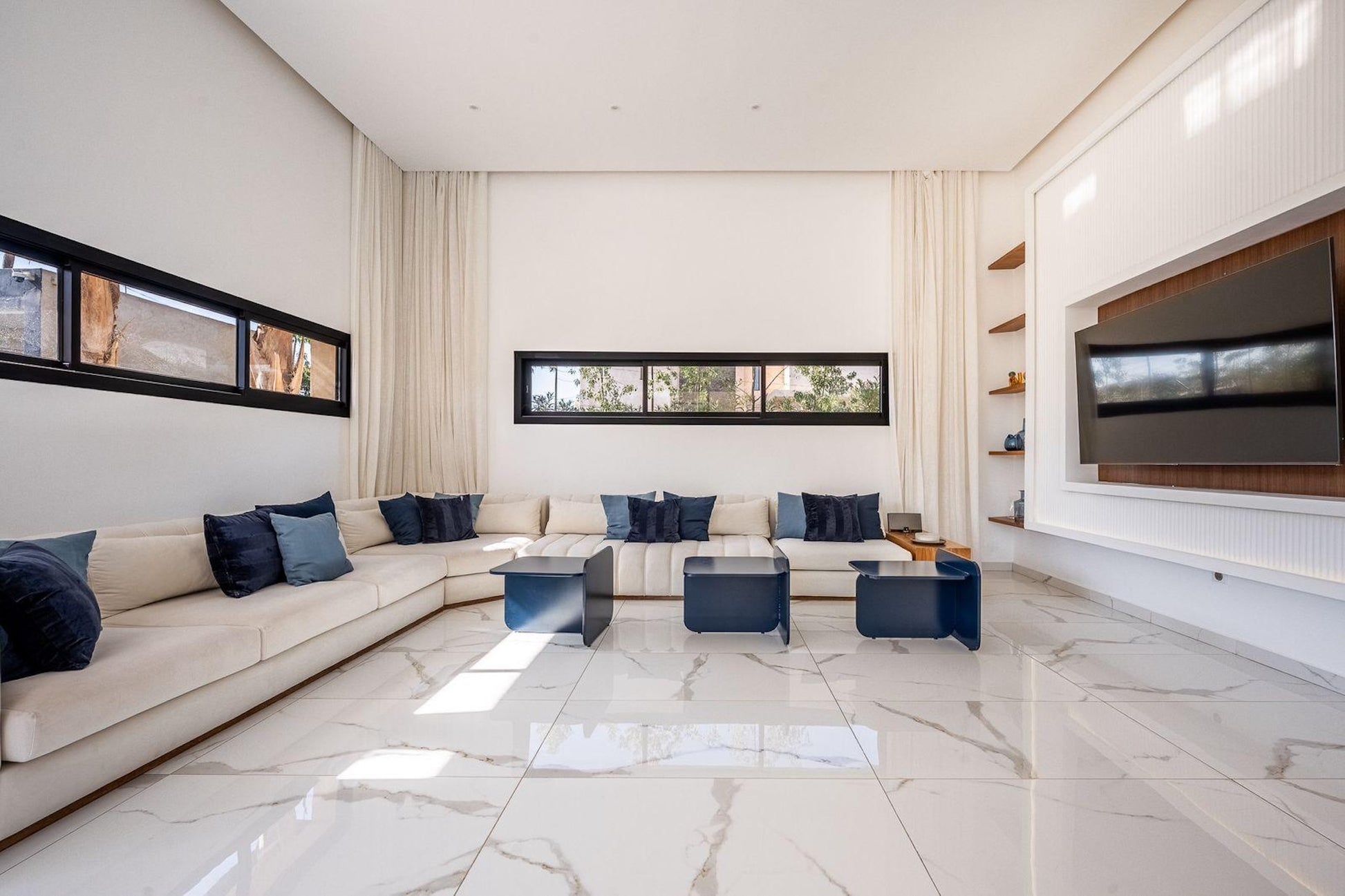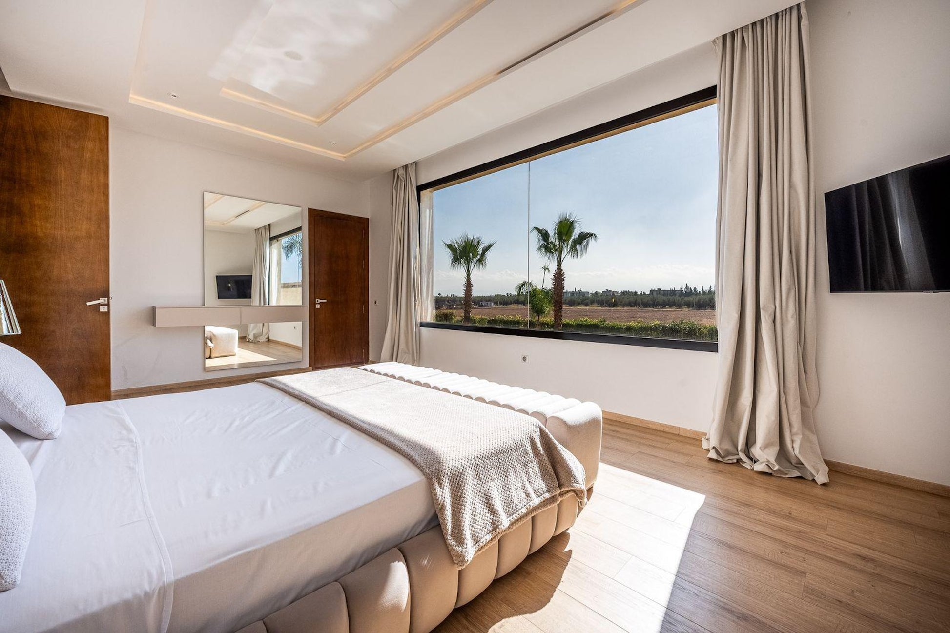 Le Palais Mahora incarne une vision contemporaine du séjour haut de gamme. Édifiée sur un vaste terrain arboré, cette villa moderne séduit par ses volumes généreux, sa luminosité naturelle et son atmosphère paisible. Pensée pour accueillir familles et groupes dans un cadre sécurisé et élégant, elle offre un équilibre parfait entre confort, intimité et douceur de vivre marocaine.