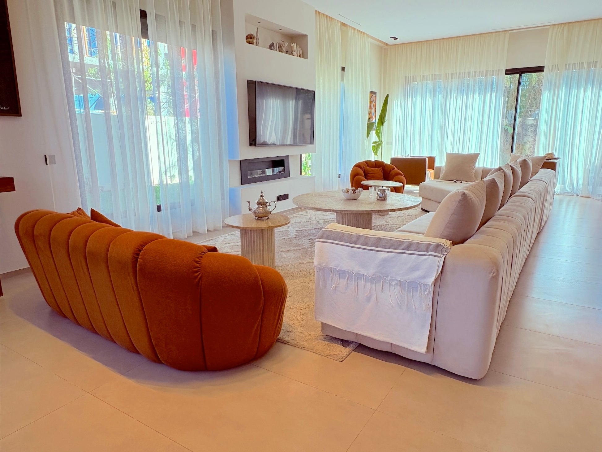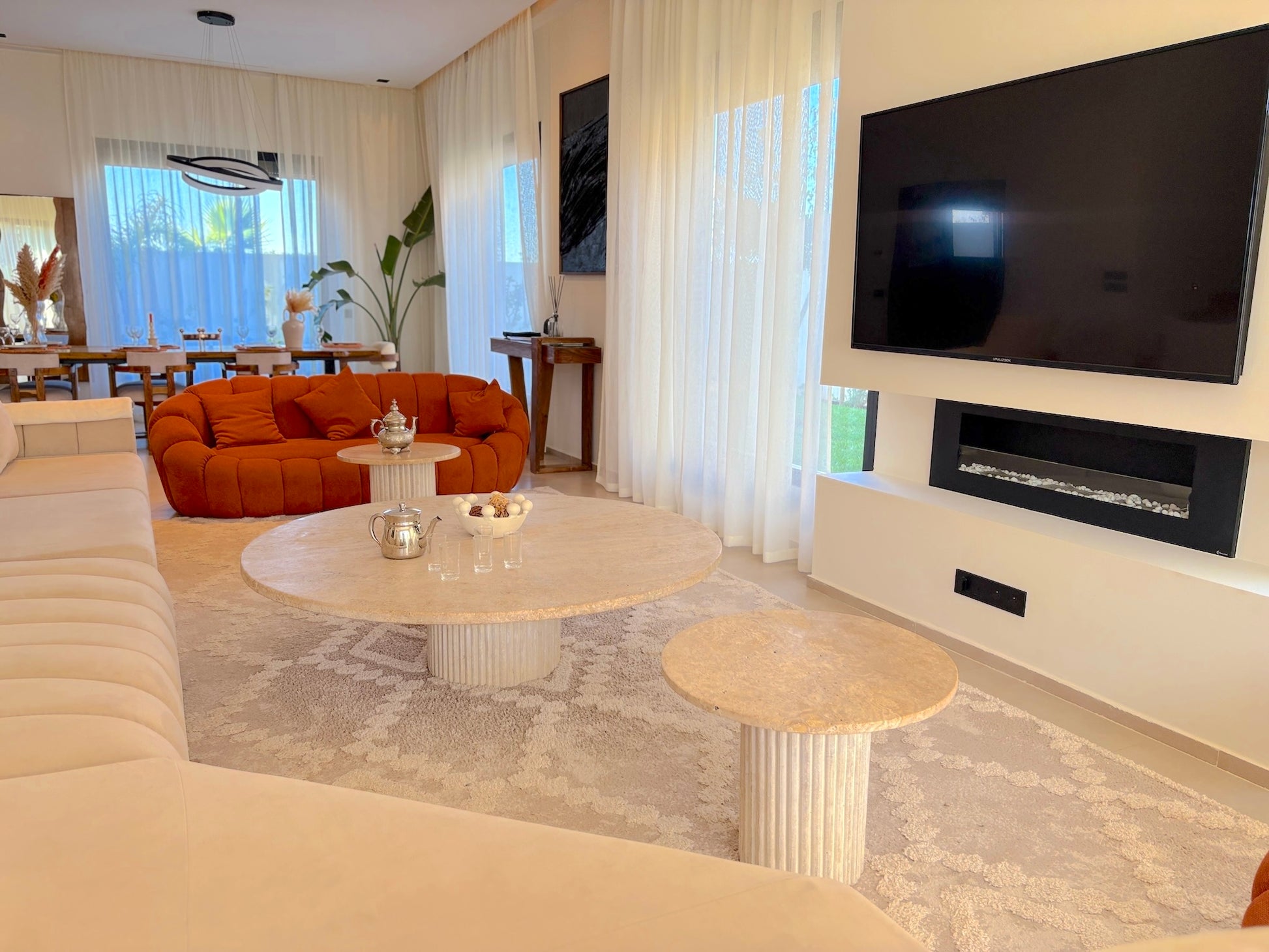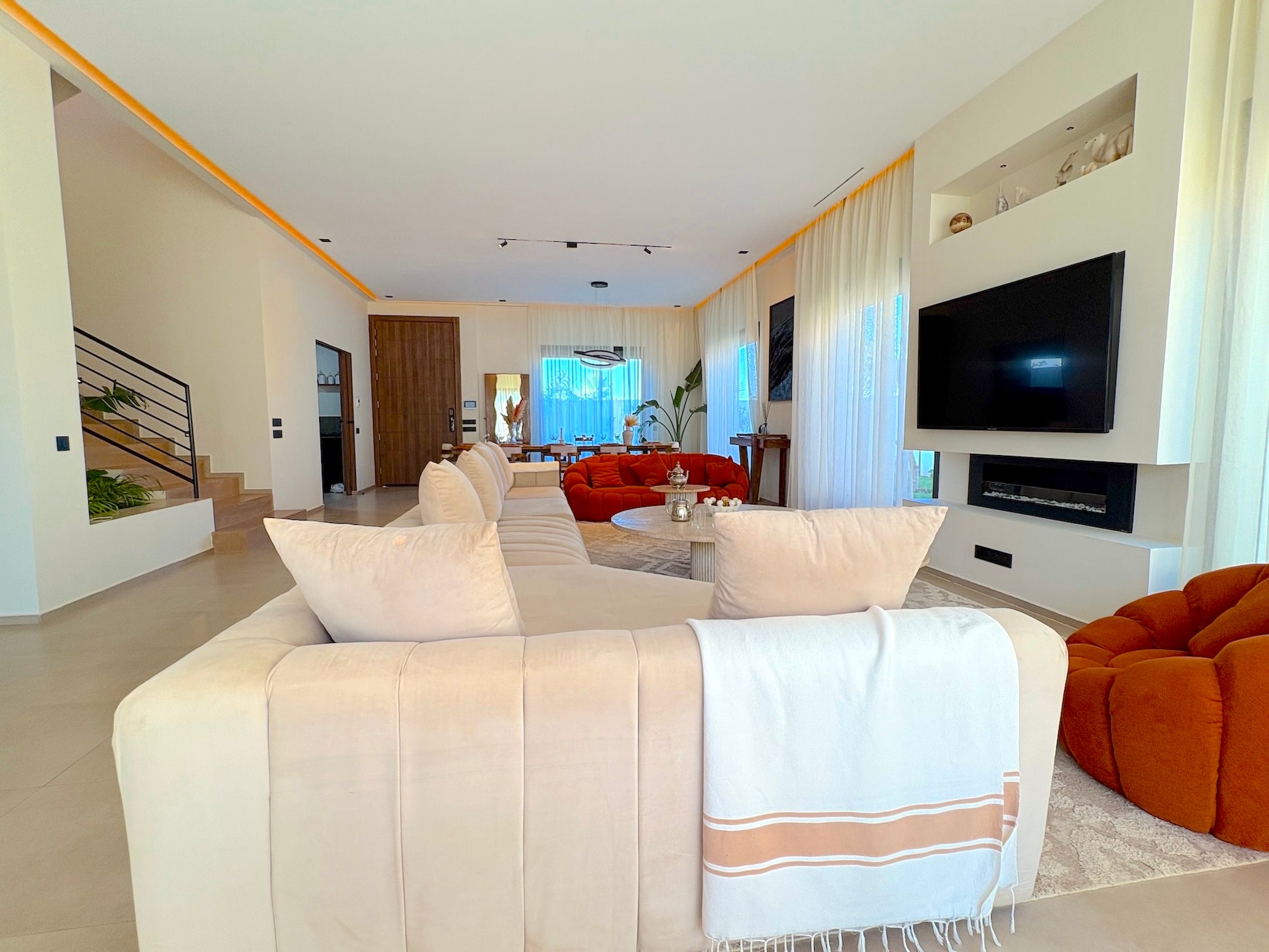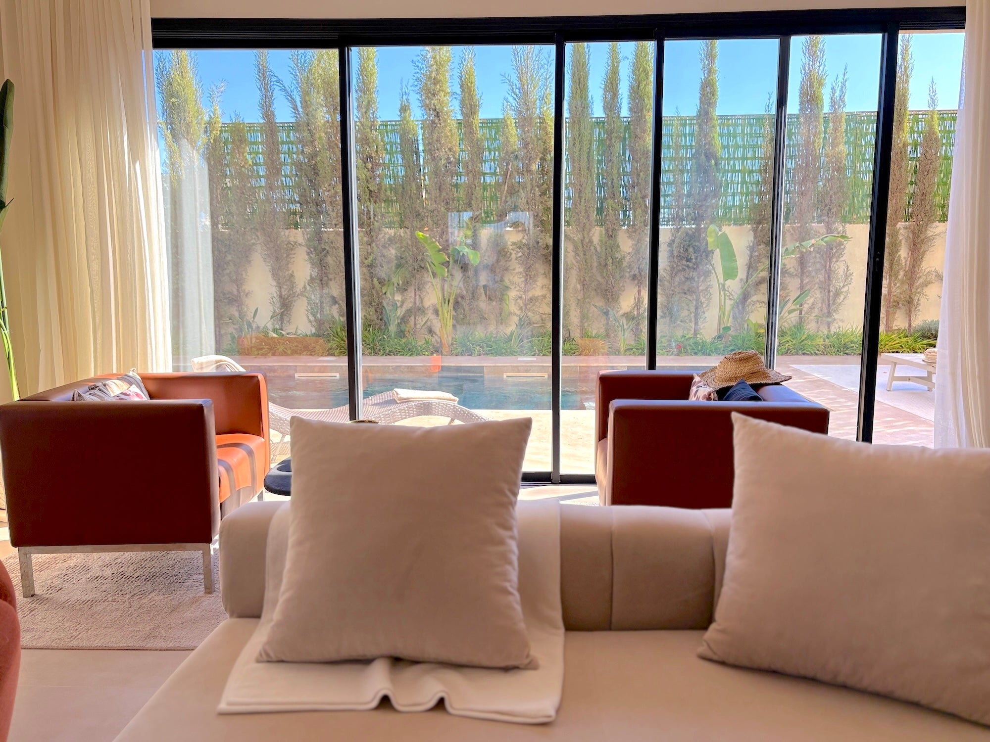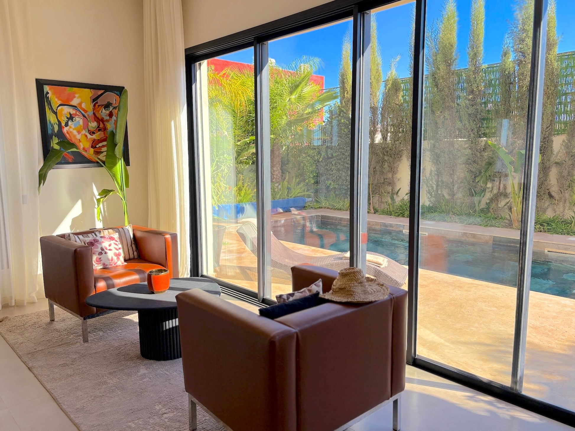 Les 4 chambres avec salles de bains privatives, le salon lumineux avec cheminée, la cuisine entièrement équipée, le Wi-Fi haut débit, le linge de maison, les draps et serviettes de bain, la climatisation intégrale, ainsi que les espaces extérieurs soigneusement aménagés avec jardin privé, piscine, chaises longues et espaces repas en plein air.