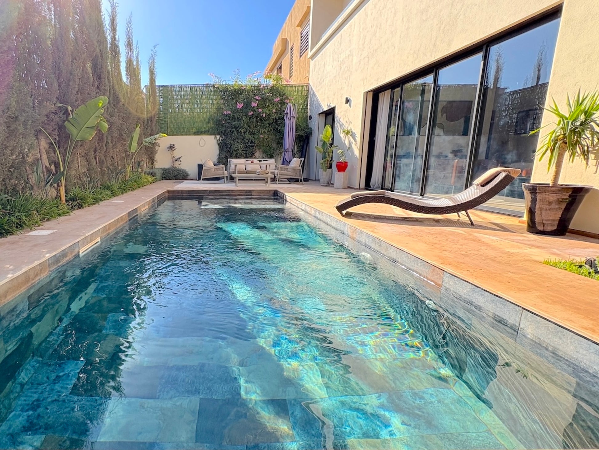 vous pouvez profiter de la piscine chauffée (50 €/jour), ainsi que de services personnalisés tels que le petit-déjeuner, le ménage, les transferts aéroport et l’organisation d’activités. -