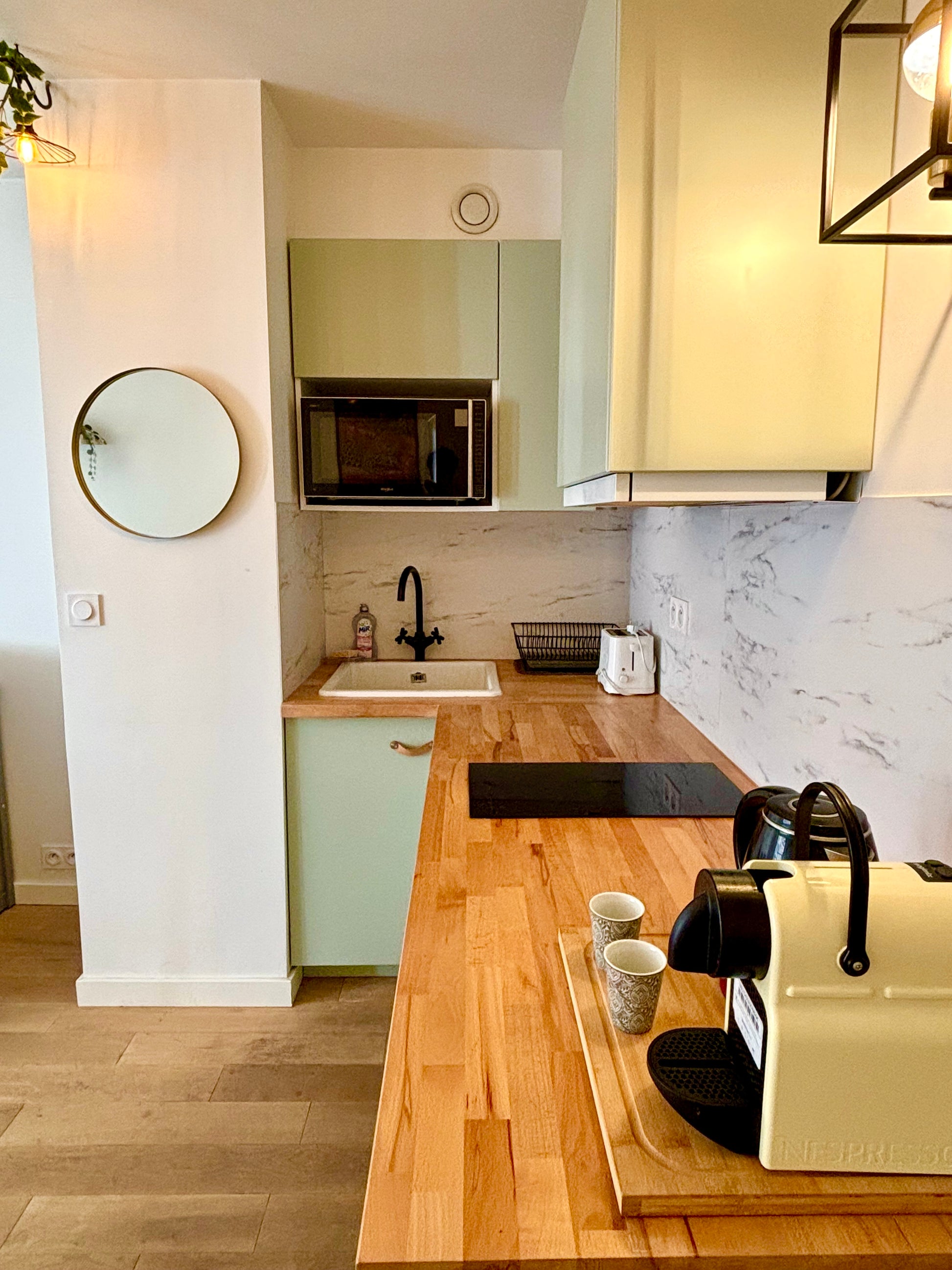 Ce Studio, situé dans le 18e arrondissement, vous offre un emplacement idéal pour explorer Montmartre, l'un des quartiers les plus emblématiques de Paris. À deux pas du Sacré-Cœur, vous serez immergé dans une atmosphère bohème avec ses rues pavées, ses artistes de rue et ses cafés pittoresques. Flânez dans les ruelles charmantes, découvrez des boutiques d'artisanat et profitez des vues panoramiques depuis la basilique. Un cadre parfait pour une expérience authentique de Paris, alliant culture, art et une ambiance unique.