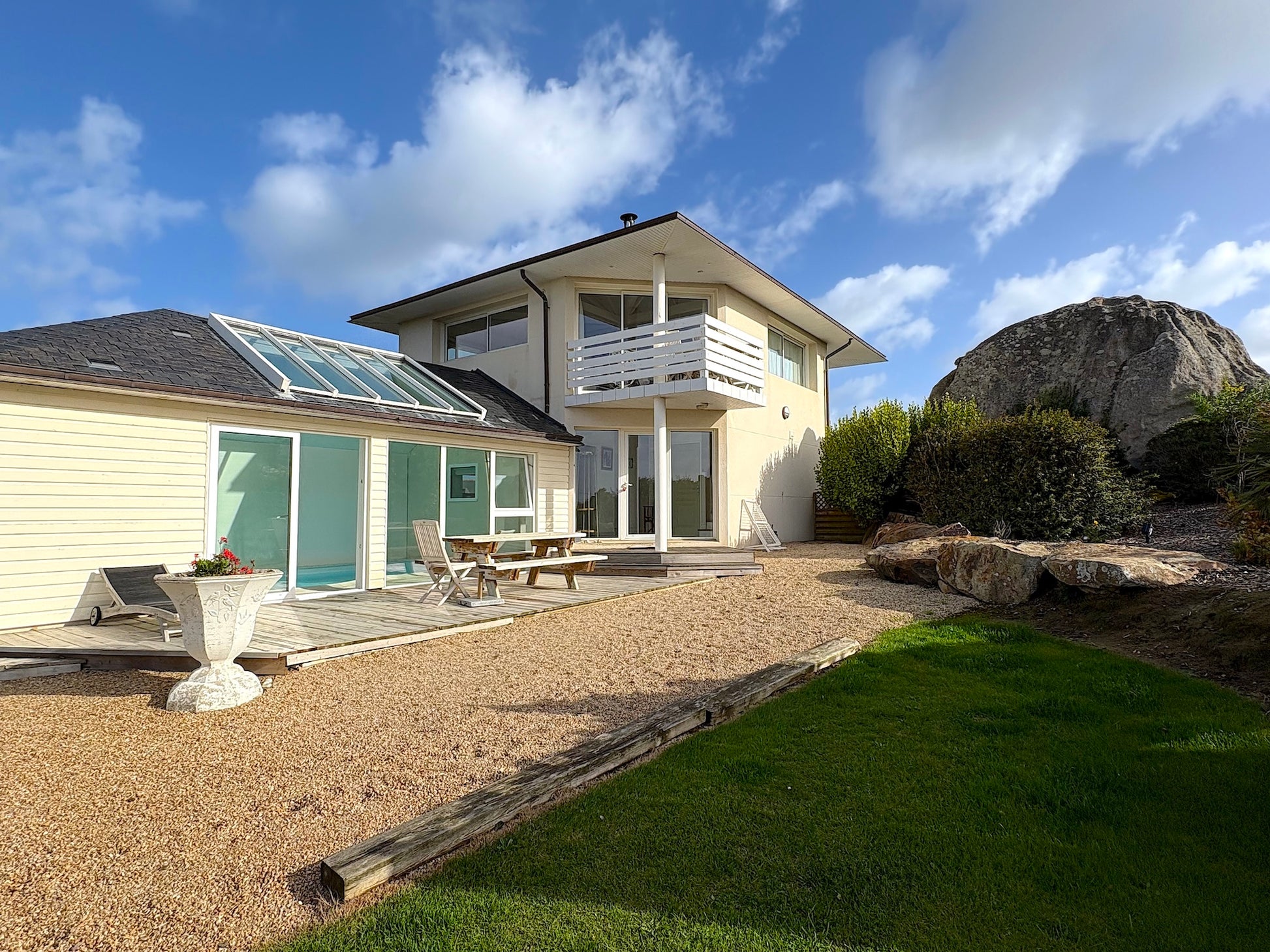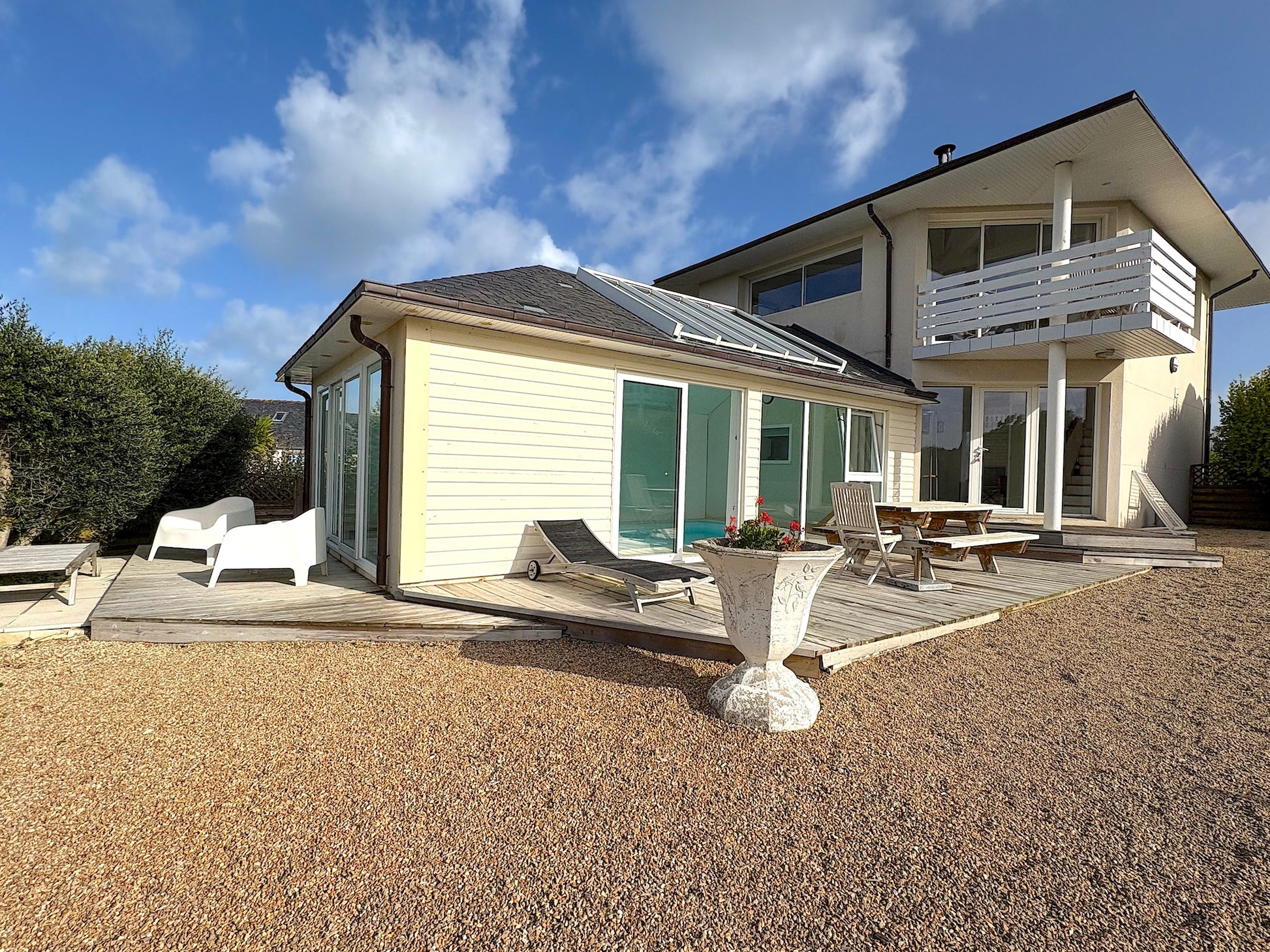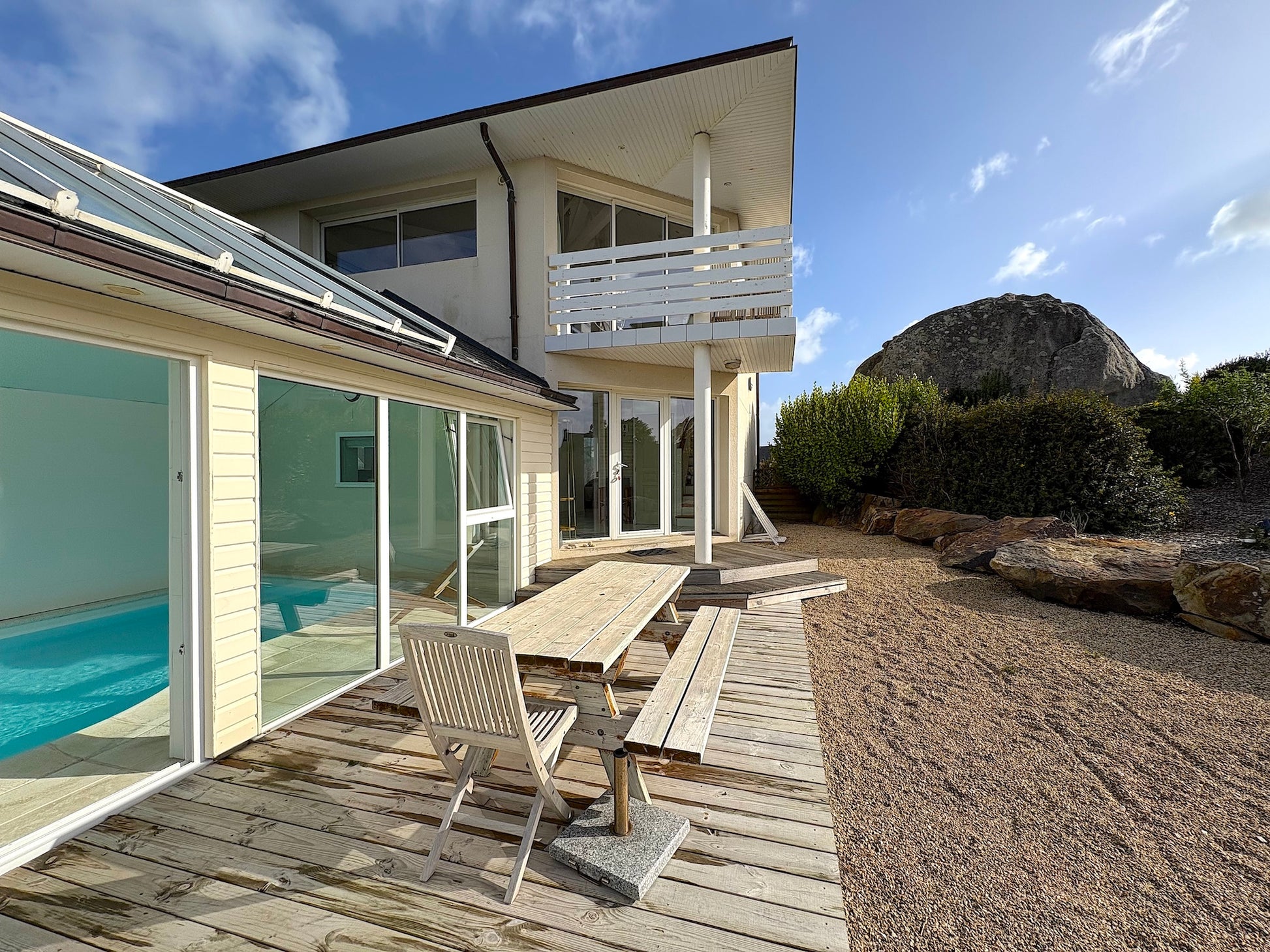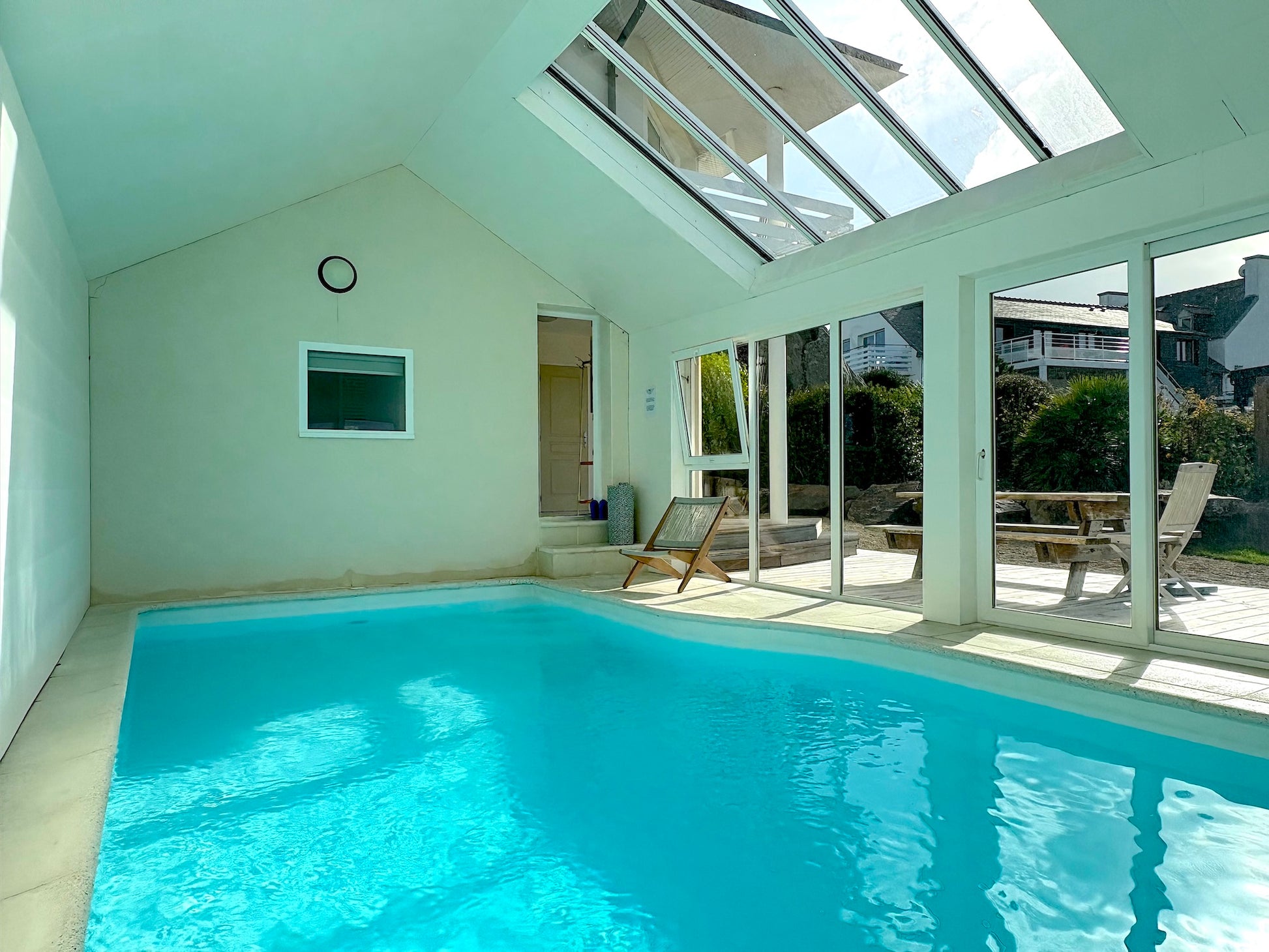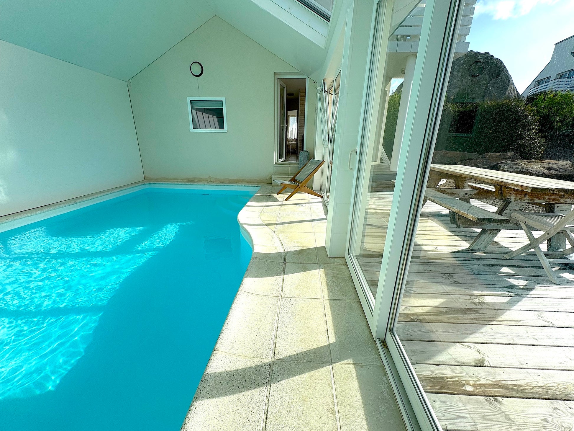 Une adresse d’exception ! La villa est spacieuse, décorée avec goût, et offre tout pour se ressourcer : piscine intérieure à 30°C, cheminée centrale, terrasses vue mer et jardin paysagé. Le matin, on part en vélo jusqu’à la plage, le midi on savoure un plateau de fruits de mer au restaurant Le Brittany à Roscoff, et le soir on se détend au coin du feu en admirant l’horizon. Le charme breton dans toute sa splendeur ! -